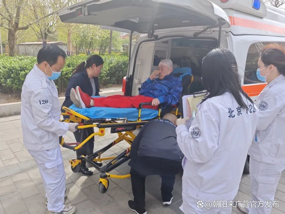 急救车赶到,社工们早已清出安全通道,电梯也提前停在一楼,彭利萍快速告知医生老人的病史,说明伤势情况。急救人员迅速给老人头部伤口进行处理。