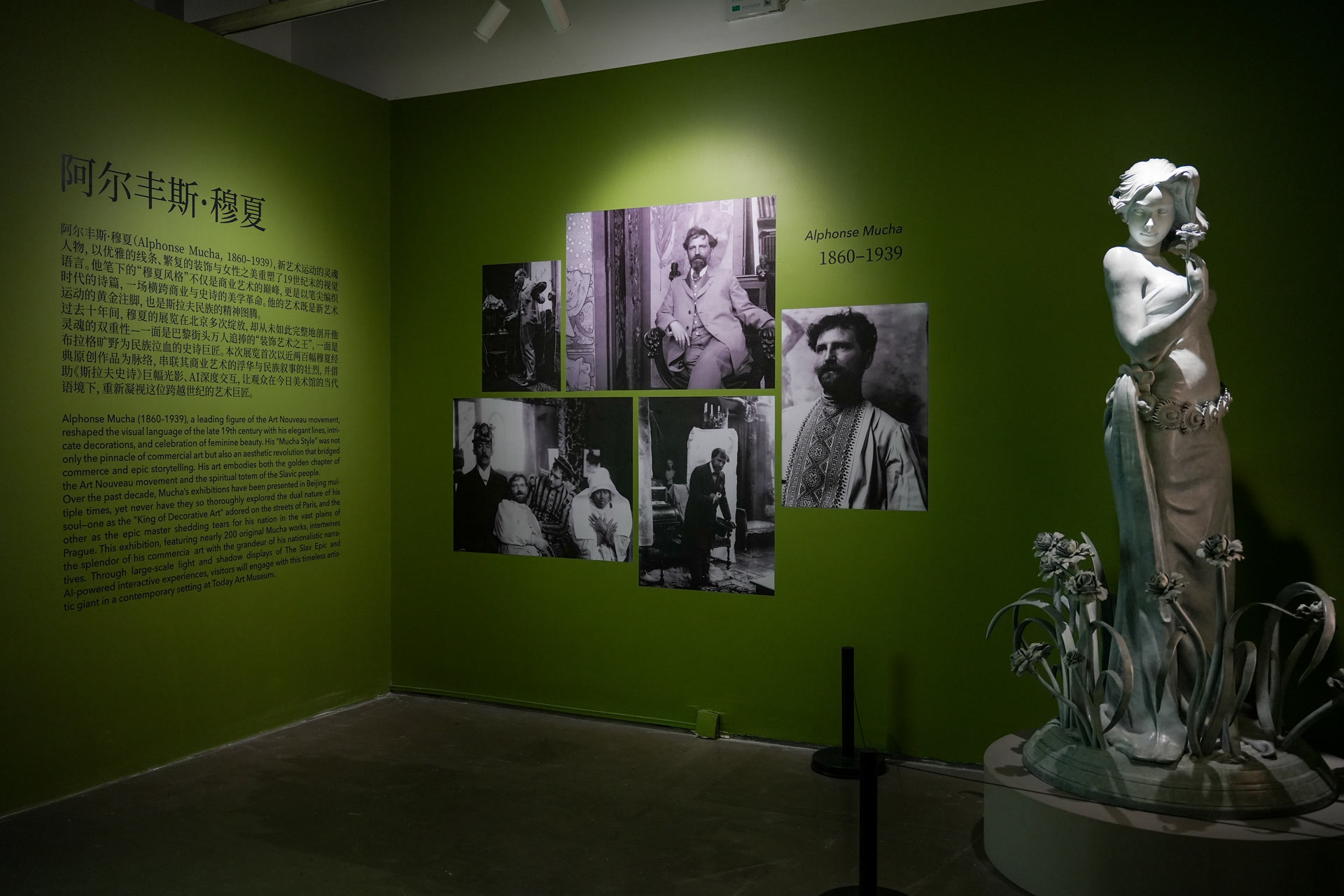 本次展览以近200 幅穆夏作品为脉络,从巴黎的商业艺术创作到布拉格的严肃作品,包含绘画、海报、画册、书籍插画、平面设计等,并借助《斯拉夫史诗》巨幅光影、AI深度交互,让观众在当代语境下,重新凝视这位跨越世纪的艺术巨匠。