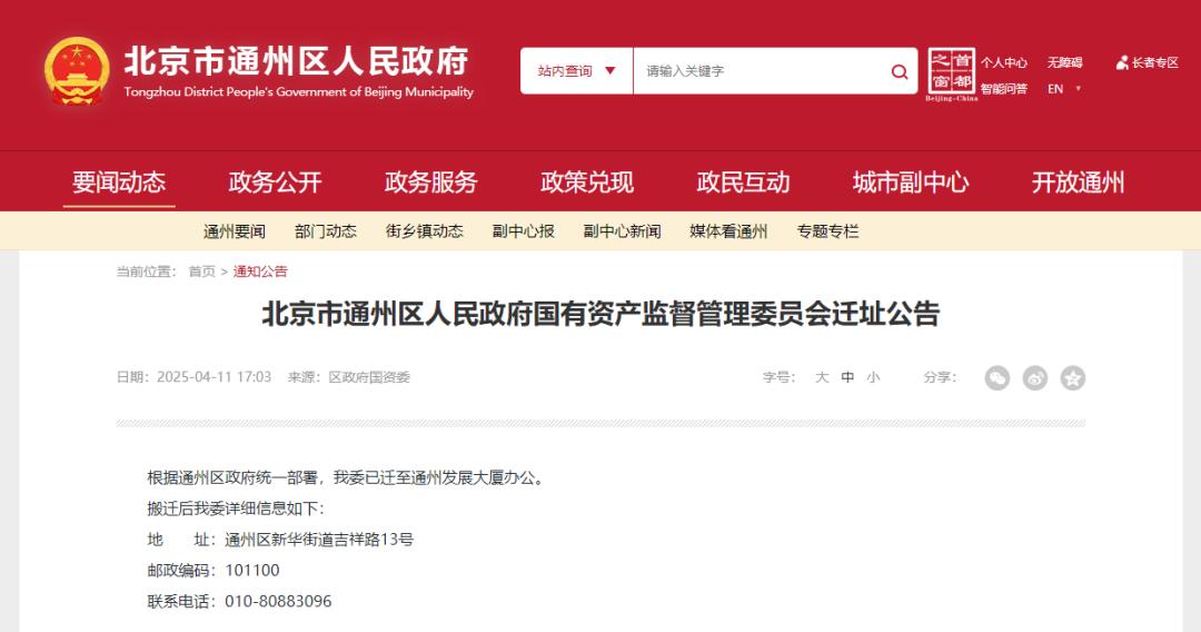 根据通州区政府统一部署,我委已迁至通州发展大厦办公。