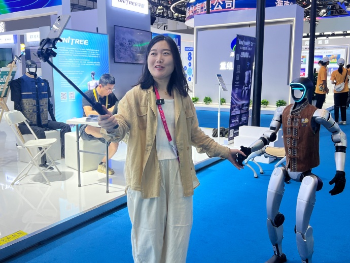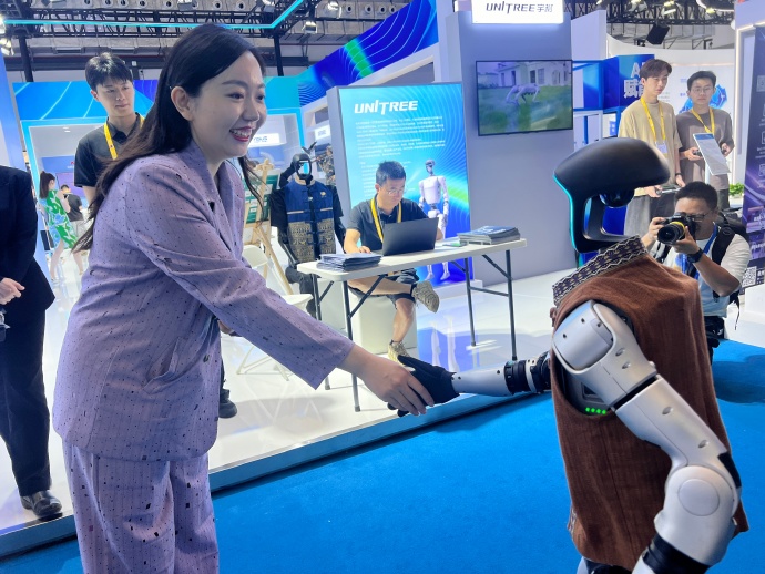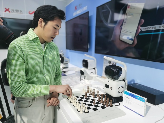 14日上午,记者在现场看到,国内首款量产人形机器人G1热情地与观众握手互动,AI下棋机器人和观众PK棋艺,具身服务机器人展示餐饮配送实力,BrainCo智能仿生手灵活完成弹琴等操作……机器人也有了十八般武艺。