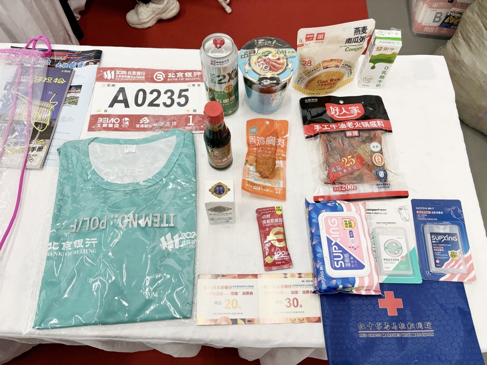 昨天,2025北京银行北京城市副中心马拉松领物工作在中国人民大学通州校区开启。参赛包作为“主角”,备受选手关注。其中不仅包含了号码布、参赛服、红十字健康包等“老三样”,还有能量胶、方便面、啤酒、酱油、火锅底料等“新品种”,从运动能量补给到运动防护用品,一应俱全,为选手们提供了全方位的保障。