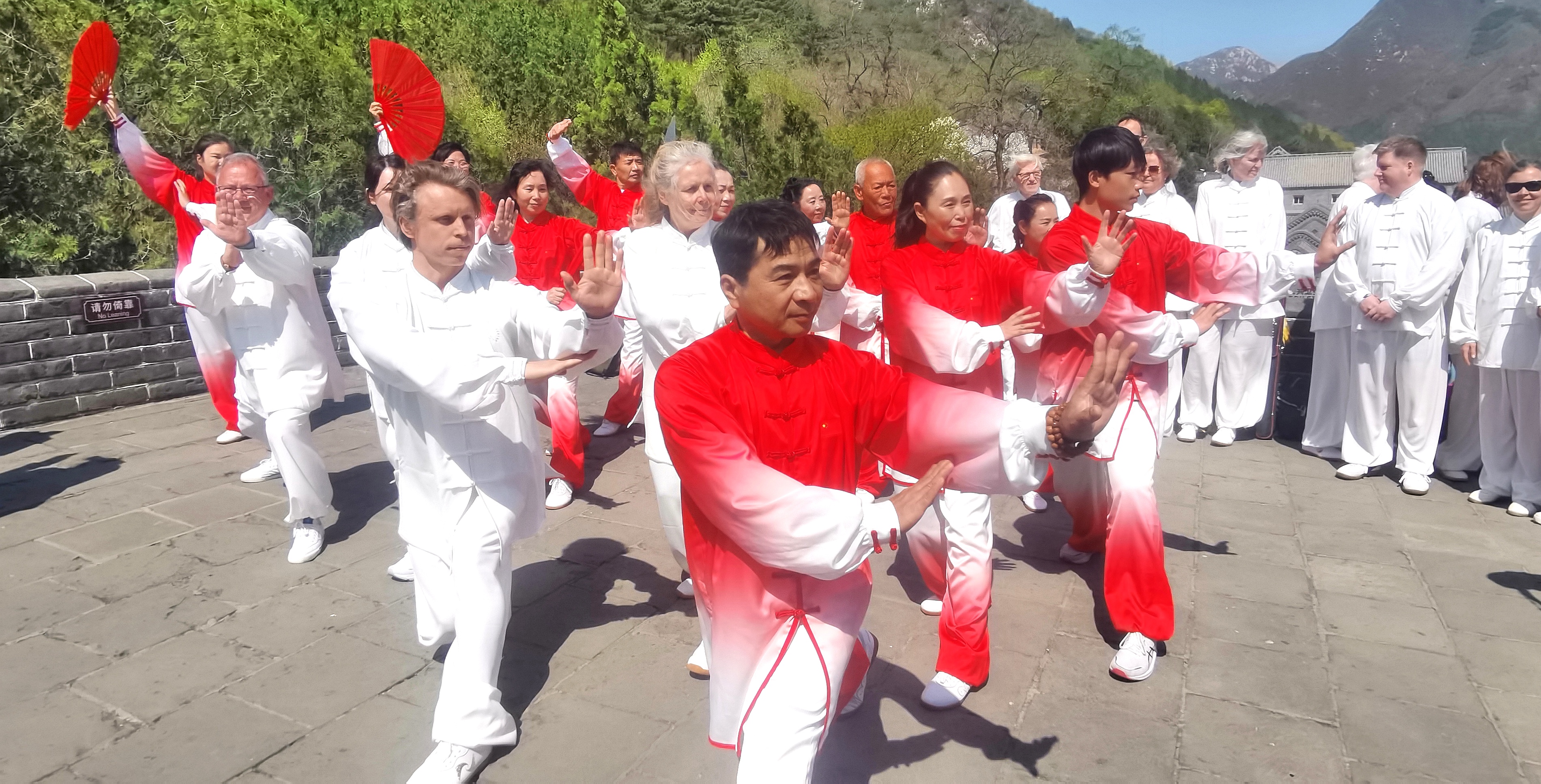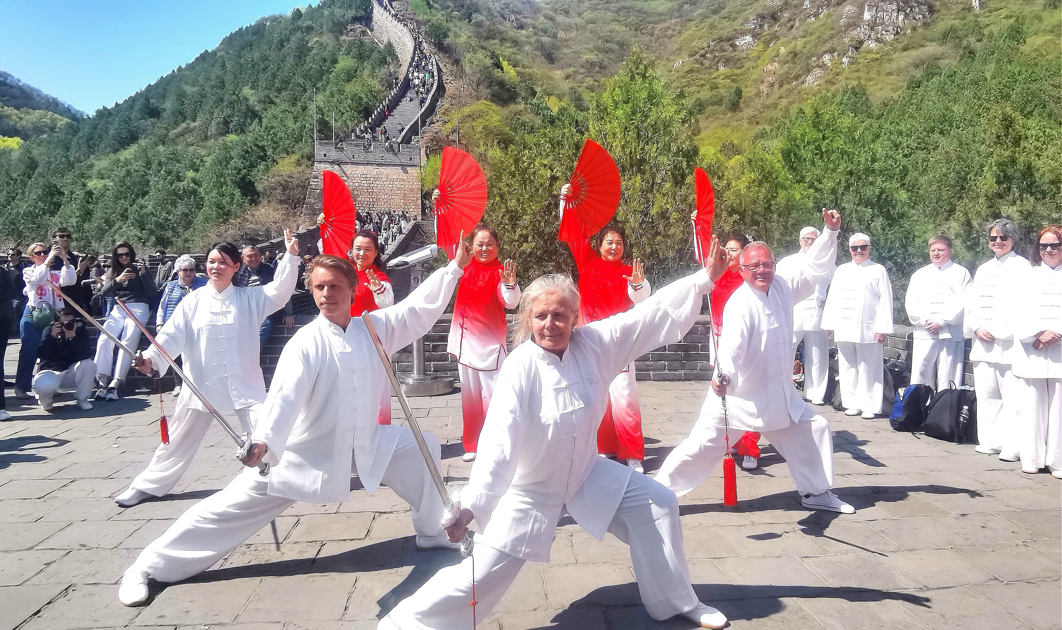 一场别开生面的太极对话4月14日在居庸关长城之巅举行。挪威太极中心的24位太极爱好者不远万里奔赴北京,与北京市武术运动协会的太极爱好者一同太极论道、以“武”会友。