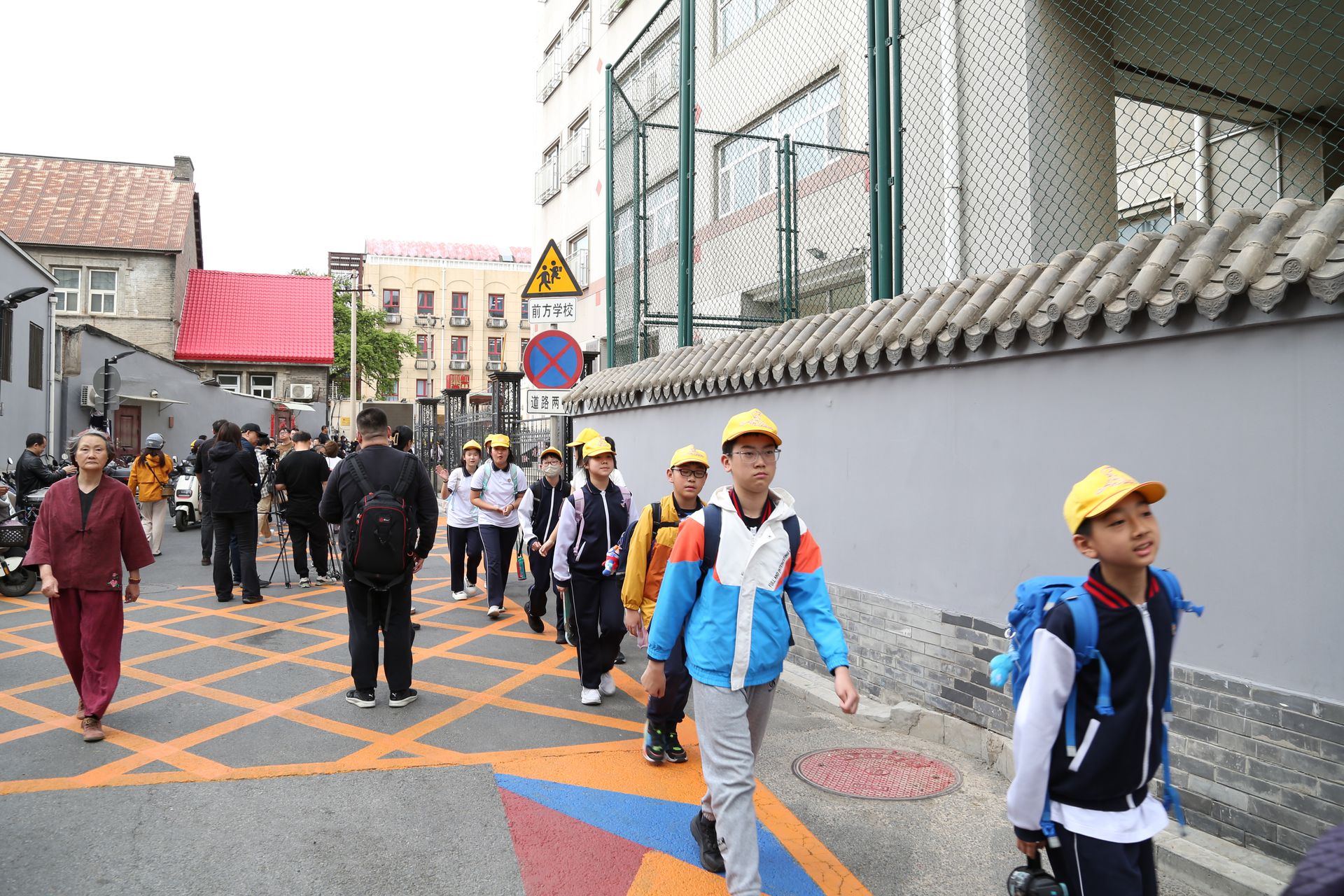 灯市口小学还和毗邻的景山学校建立了“通学联盟”,统筹调整学生上下学时间,分批放学,错时共用通学路,由教师将学生分批带至分段设置的放学集散点,方便家长接送。