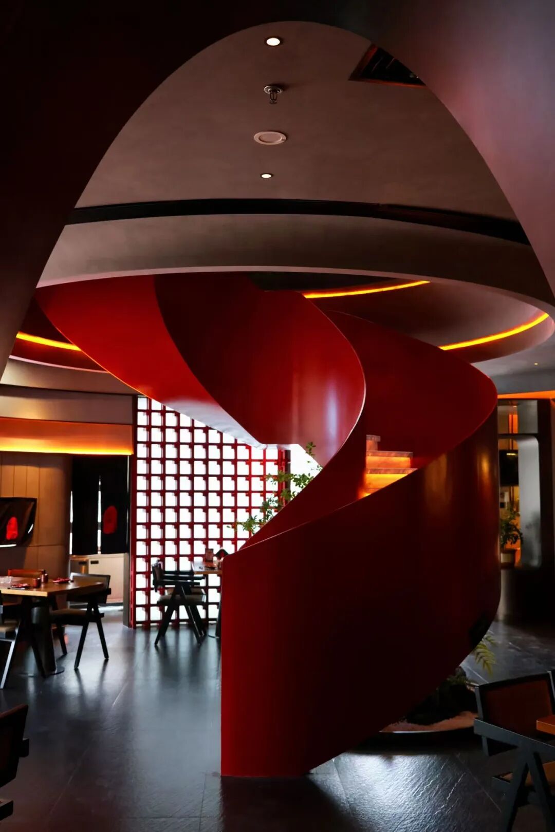 走进这一处筒仓形建筑,粗粝的混凝土墙面与温暖的木质吧台形成奇妙碰撞。阳光透过高耸的穹顶洒落,在餐桌上投下几何光影。