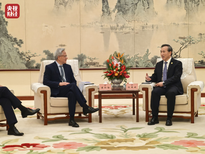 17日,中国贸促会会长任鸿斌在北京与英伟达公司首席执行官黄仁勋举行会谈,这是黄仁勋时隔3个月再次到访北京。