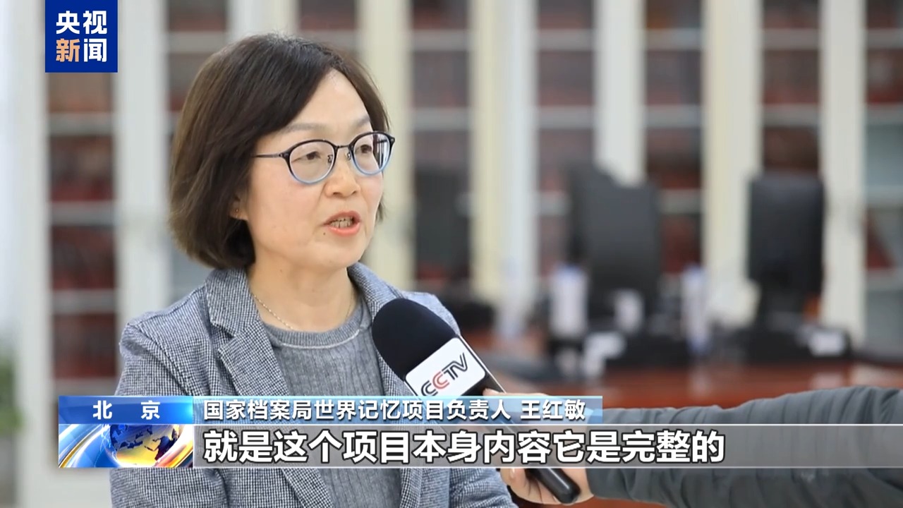 国家档案局世界记忆项目负责人 王红敏:世界记忆项目,首先它要具备的条件是真实性,必须是原件,没有经过篡改的;第二个它的完整性,就是这个项目本身内容它是完整的,没有缺失;第三个是它的独一无二性,不管是从形式和内容来说都是独一无二的。比如说甲骨文,不管是从内容上它的文字,还是它的这种形式,都是世界上独一无二的。