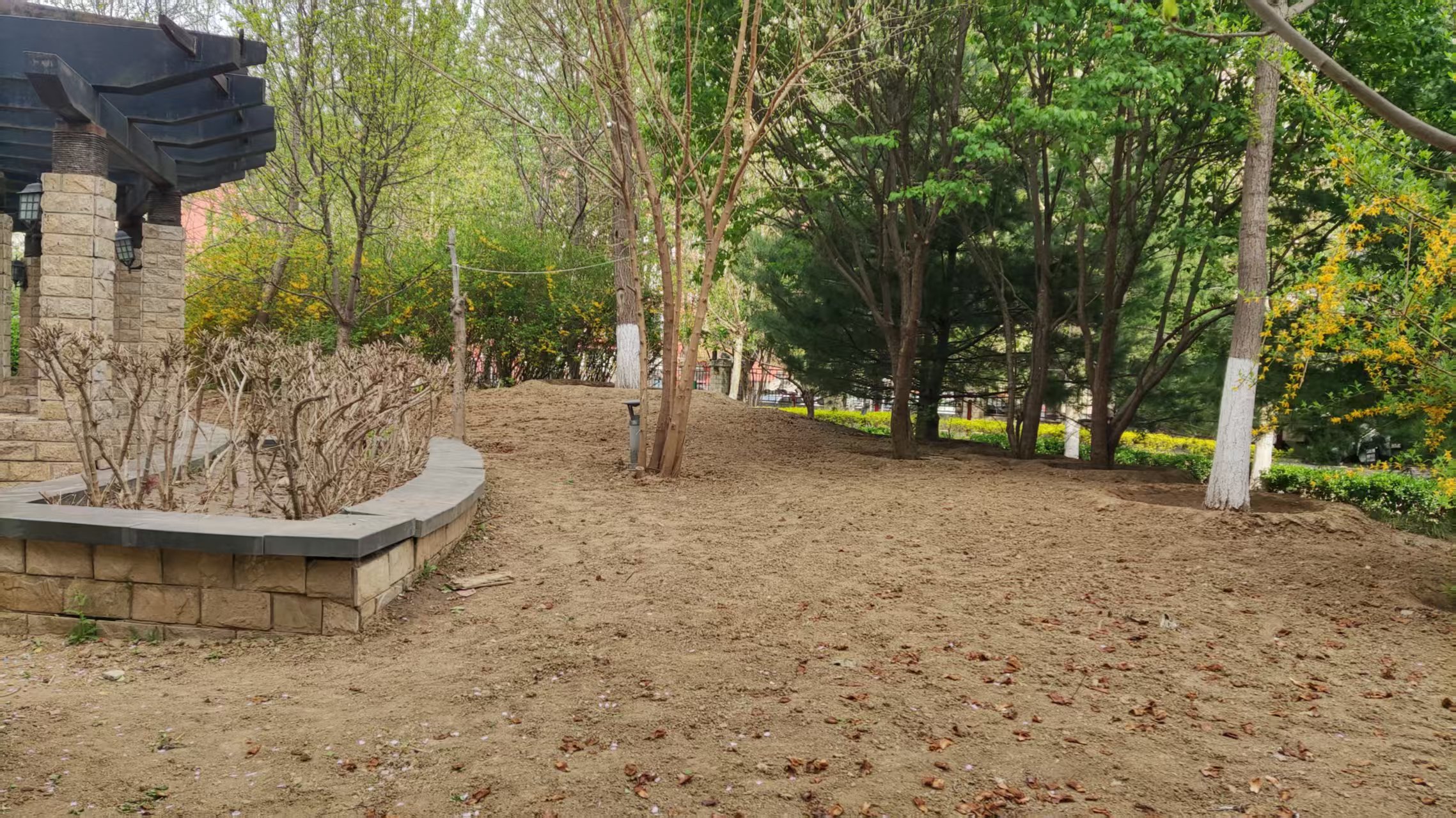 接到居民的诉求后,社区经过统筹协调,决定调用社区经费,并联合居民、志愿者共同对辖区内斑秃绿地进行补种活动。