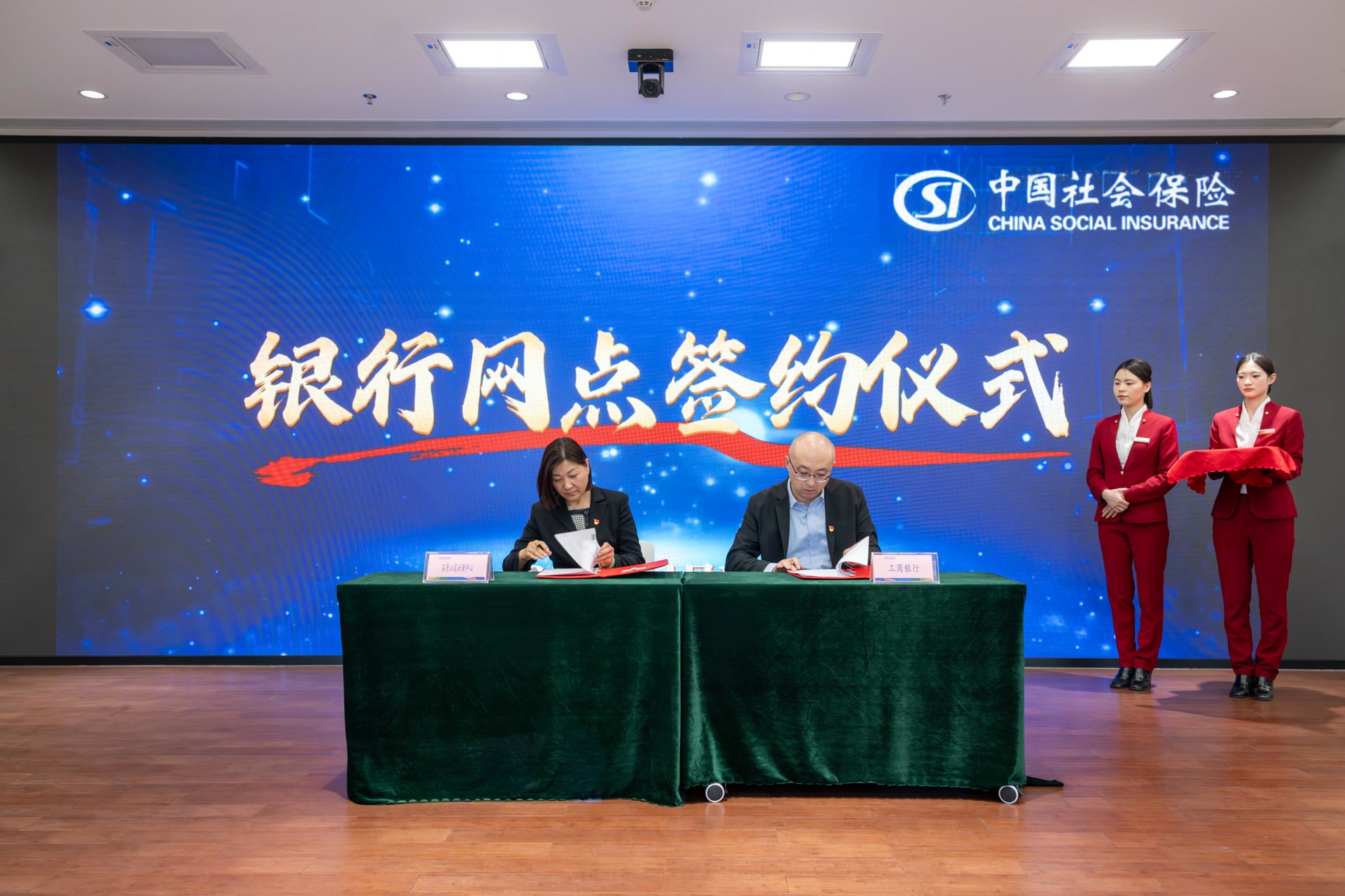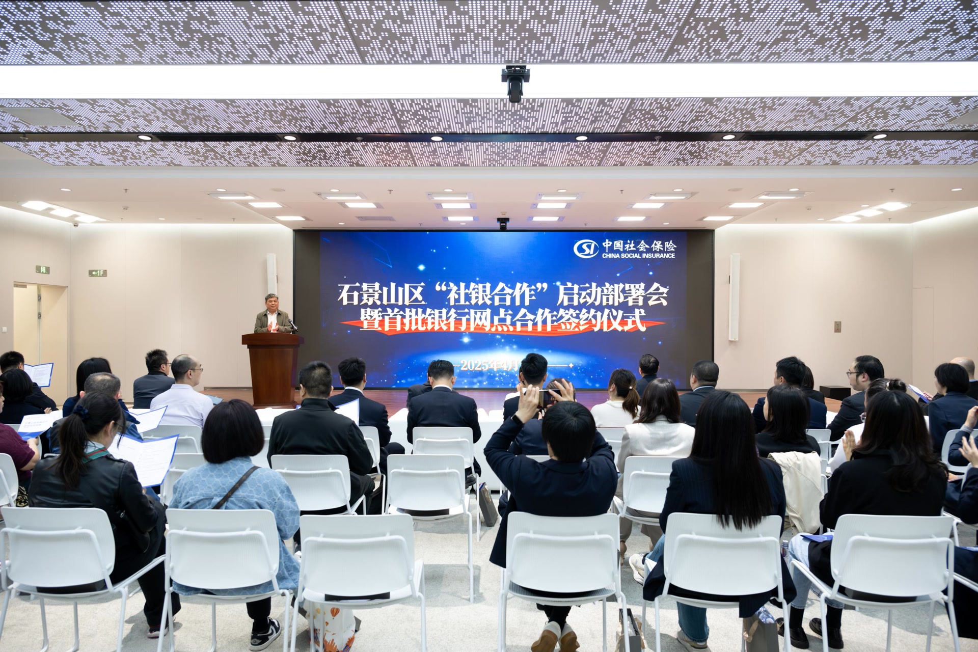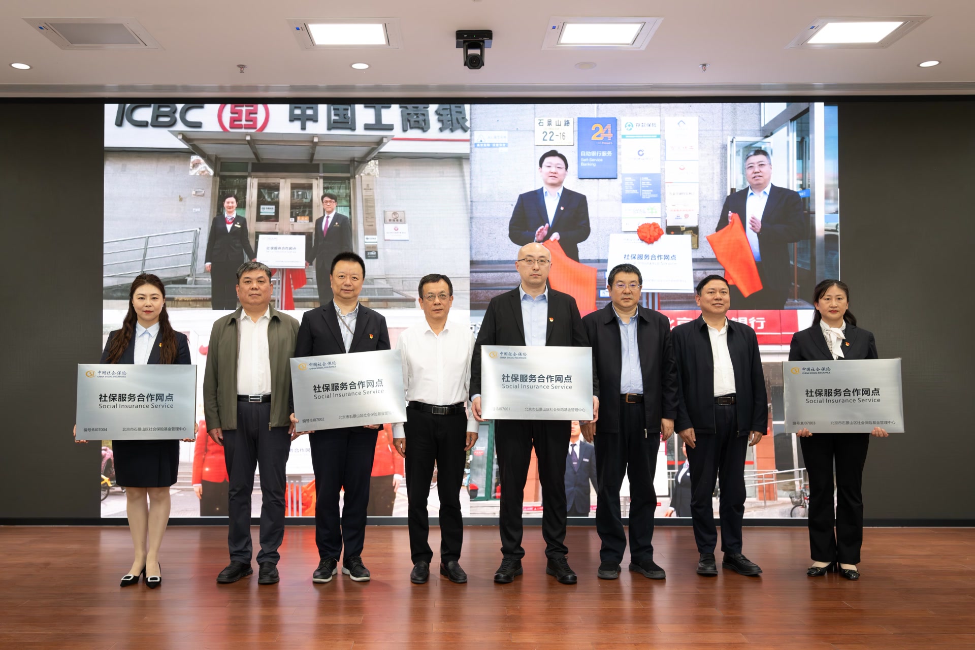 活动现场,石景山区人社局与4家银行签署了《社银合作协议》,明确服务内容、数据安全等权责事项,并由市区领导为合作银行授牌。工商银行石景山支行代表承诺,将优化网点配置,配备专职人员与智能设备,确保社保业务办得快、服务优。