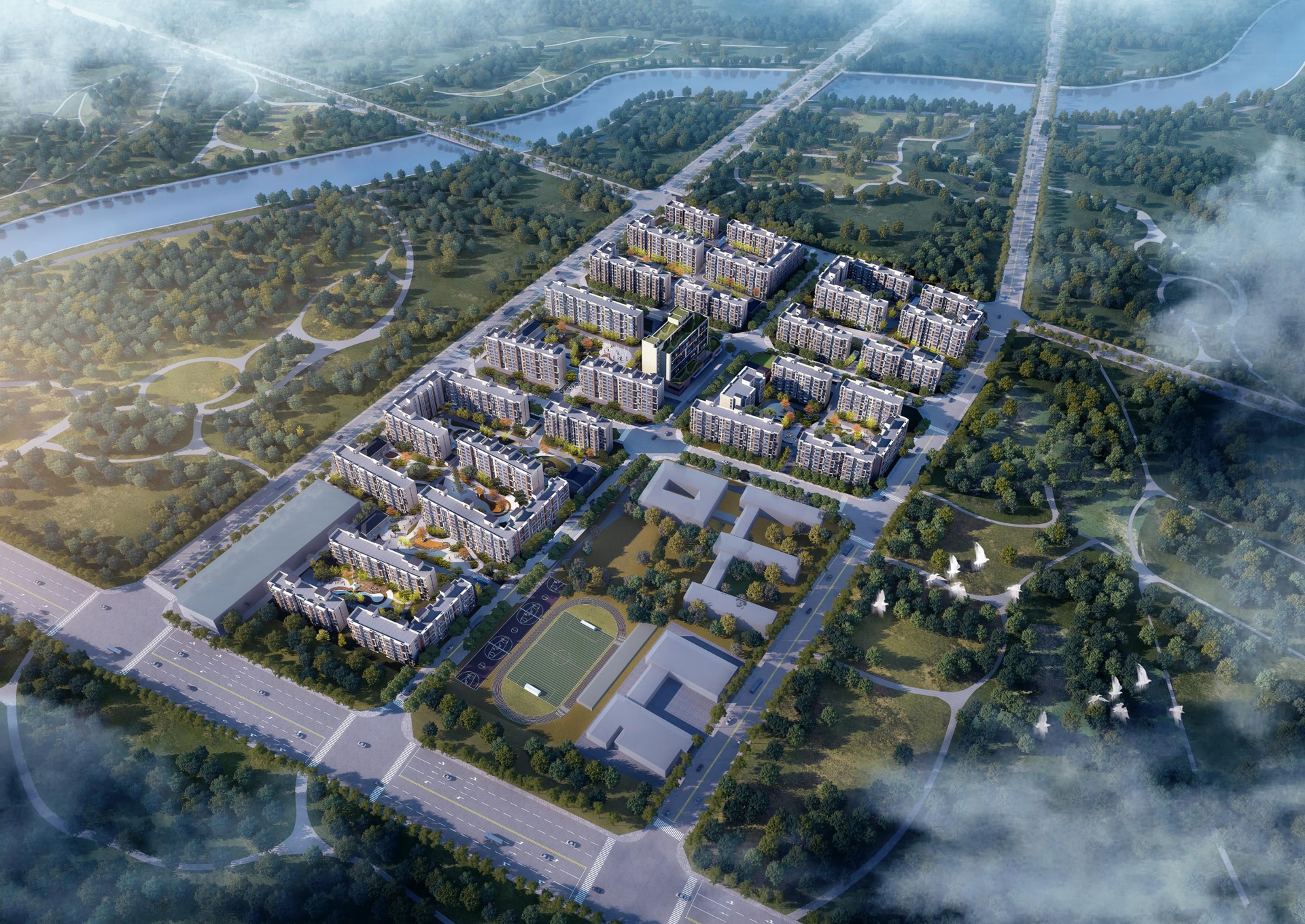 南火垡集租房项目距城市副中心核心区、张家湾设计小镇、环球影城主景区等均在10公里范围内,由北投集团旗下北京通州投资发展有限公司开发建设。项目总建筑面积约28万平方米,容积率仅1.8,共36栋租赁型住宅、9栋公共配套楼。项目由5个地块形成社区组团,每个地块独立设置两层地下车库,共约1700个地下车位,社区地面实现全域人车分流。