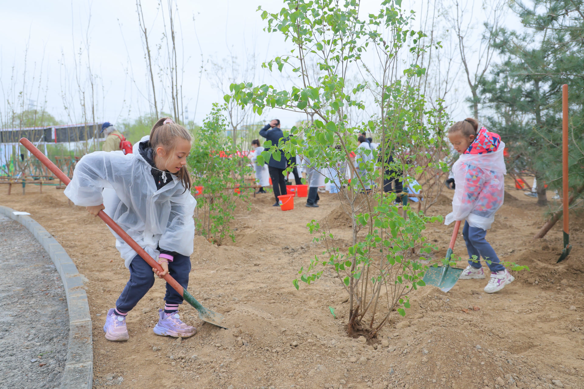 冒着细雨,不同肤色和年龄的外国友人铲土造坑、培土围堰、提水浇灌……现场一派热火朝天的繁忙景象,种下了600余株白皮松、国槐、海棠等树苗。