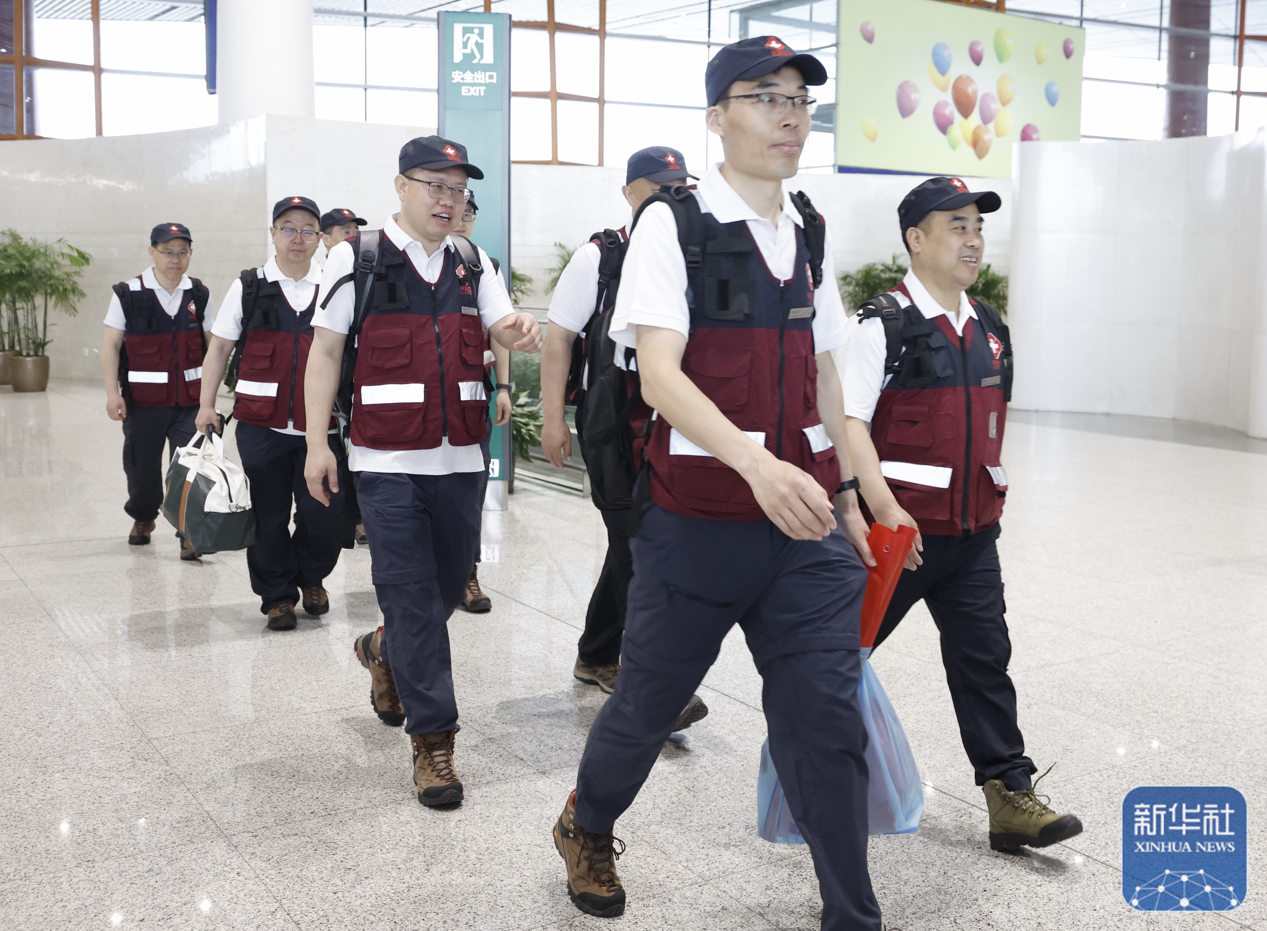 ↑ 4月19日,12名从北京出发的队员从北京首都机场离京。新华社记者 张玉薇 摄