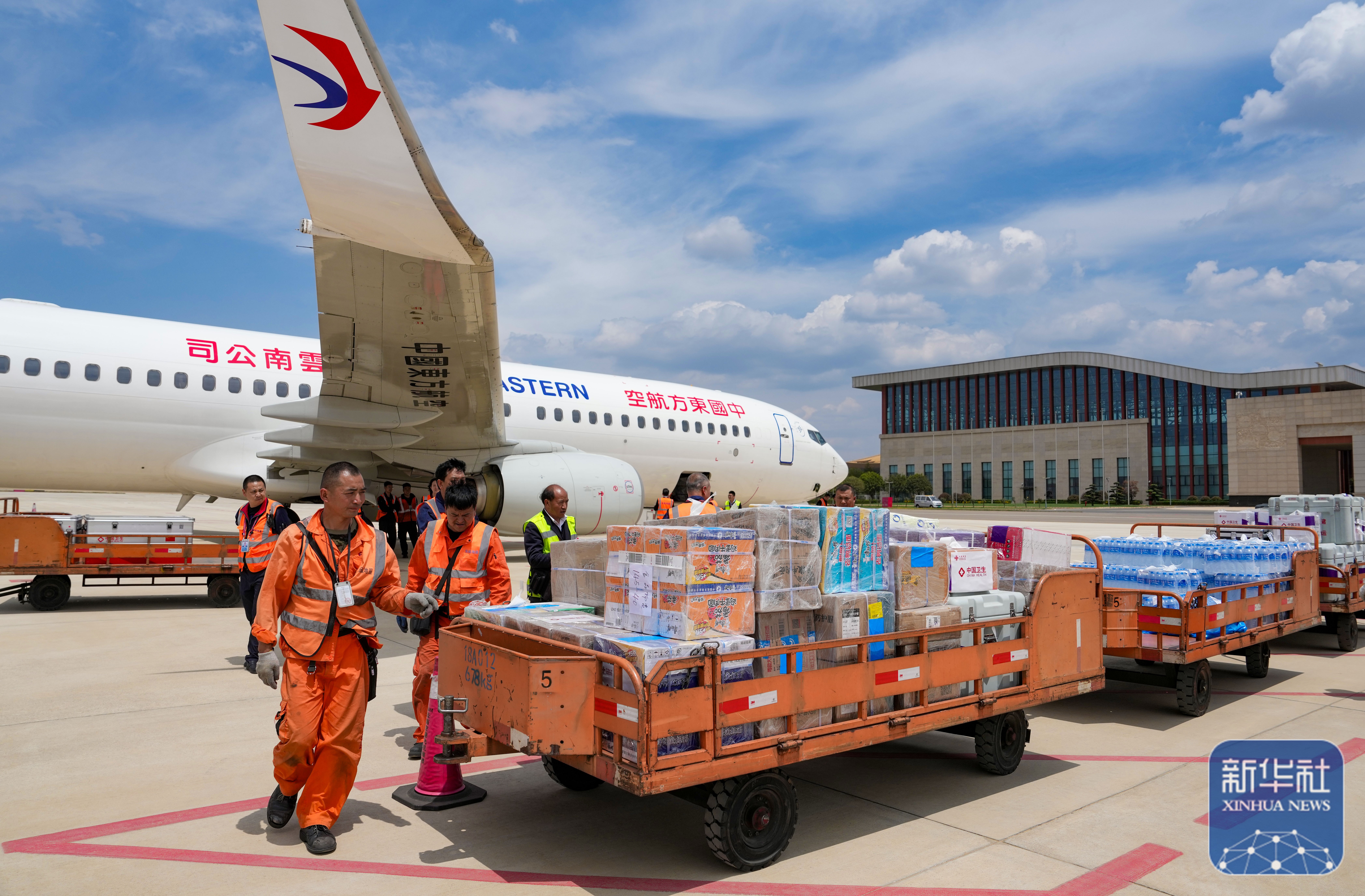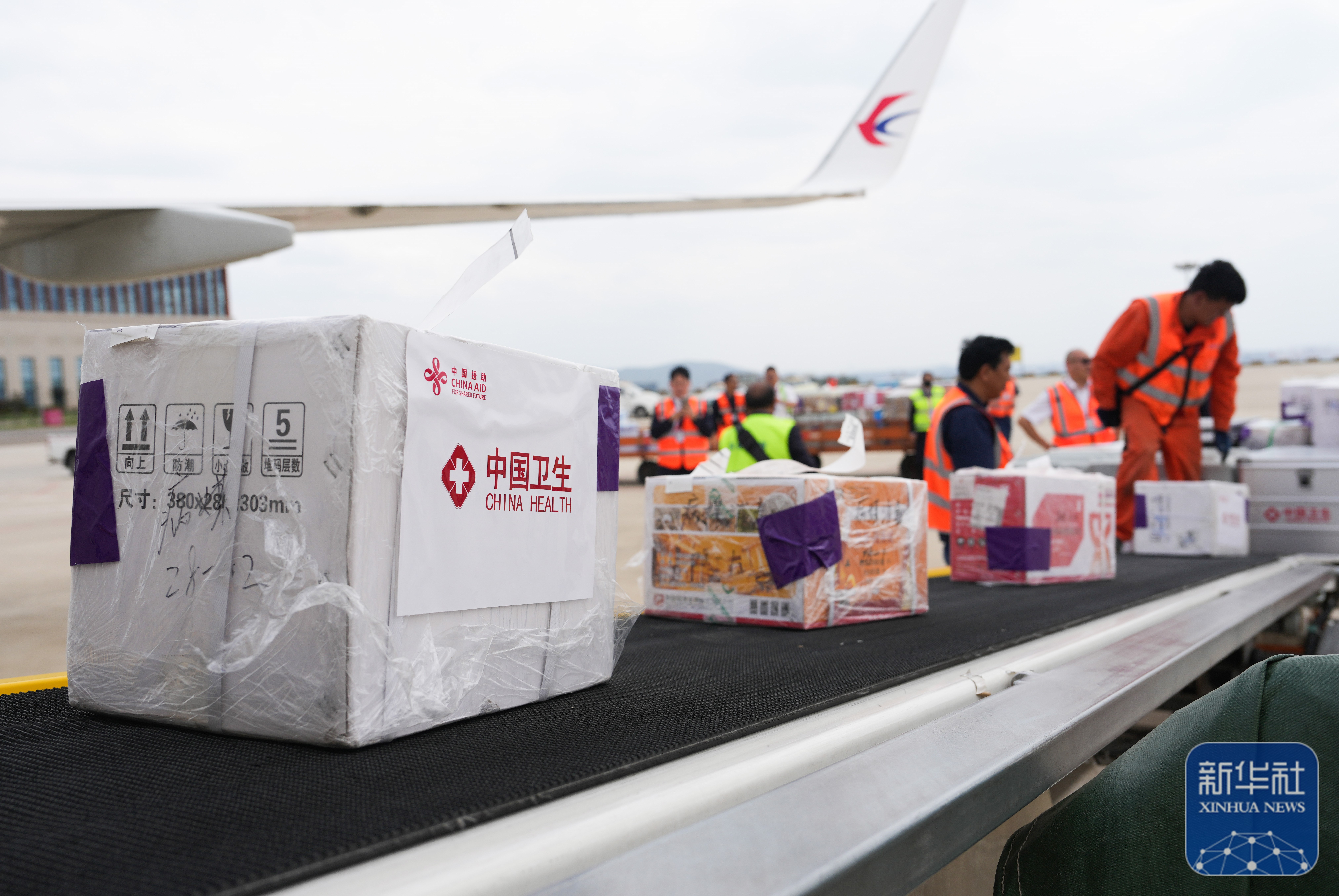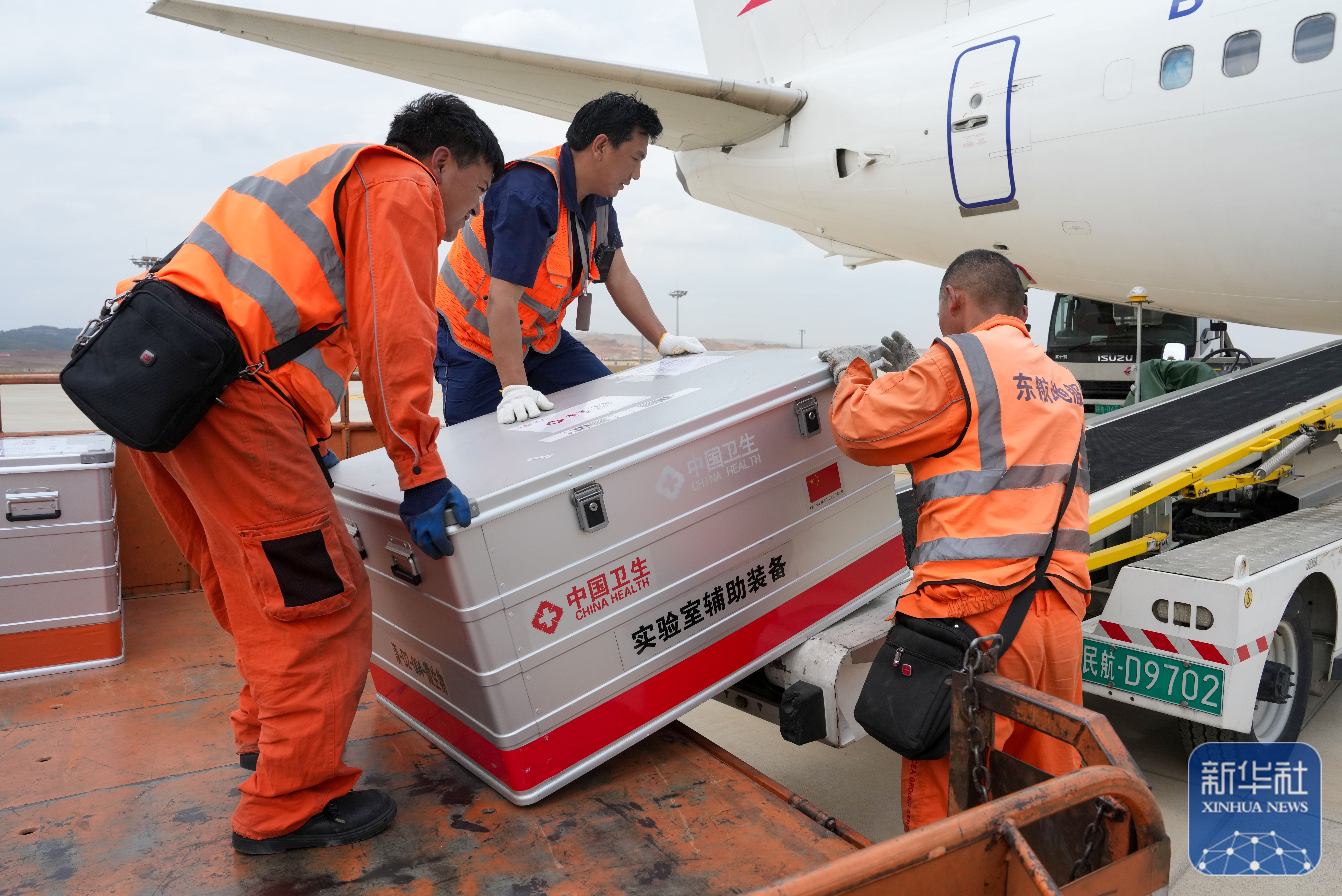 ↑ 4月19日,工作人员在昆明长水机场准备将中国政府援缅卫生防疫队携带的物资装机。新华社记者 陈欣波 摄