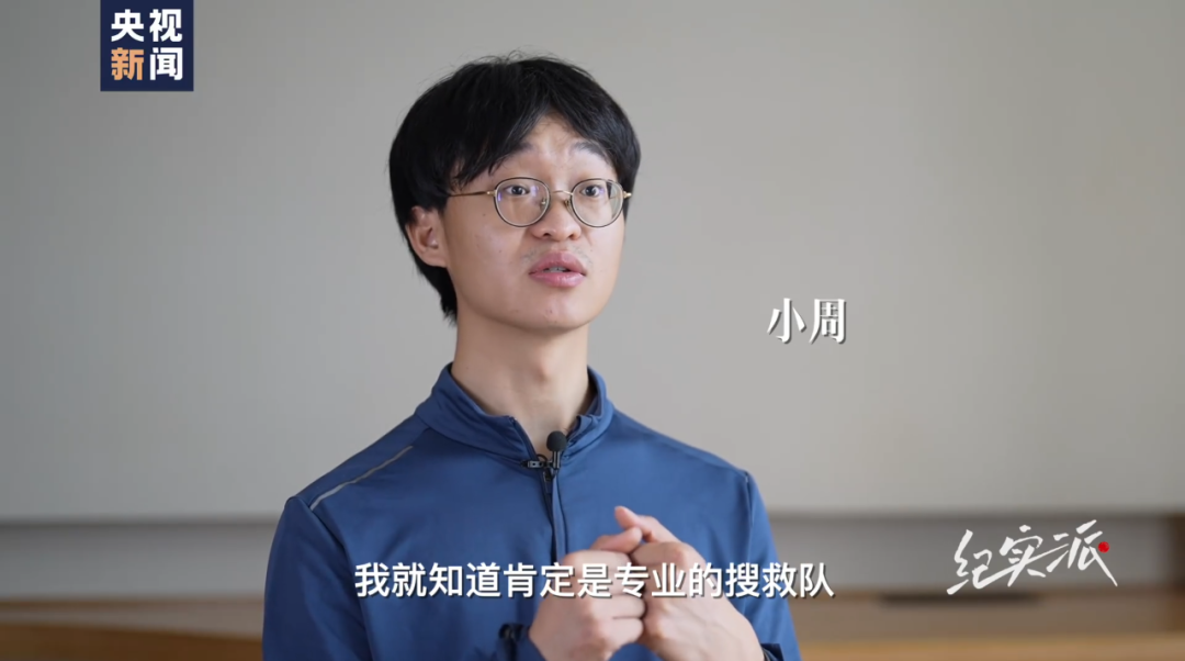 “大概过了12个小时,我就看到水下有一束特别亮的光,那个光它都能泛到我脚下水域,就那种荧光绿的感觉。我就知道肯定是专业的搜救队,我就赶紧拿潜水装备,用那个气瓶的底部去撞击出水口上方的那个岩壁。我当时就认为可能几个小时,我就会被找到。”据小周回忆,持续了一段时间,那个光源就消失了。