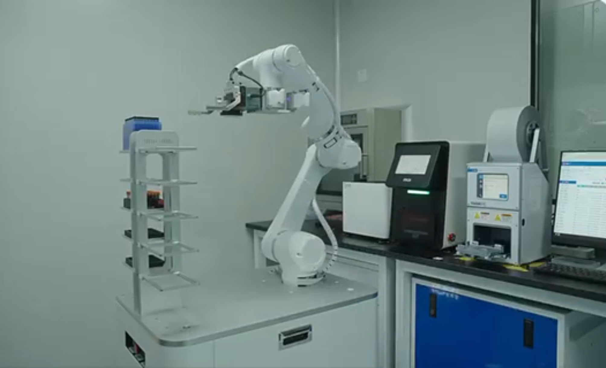 北京脑科学与类脑研究所的一间实验室里空无一人,上千份待检测样本“自觉”排队接受检测。从搬运实验耗材到实验样本精细分装,再到检测后的有序入库,全程都有机器人经手,无需科研人员干预。
