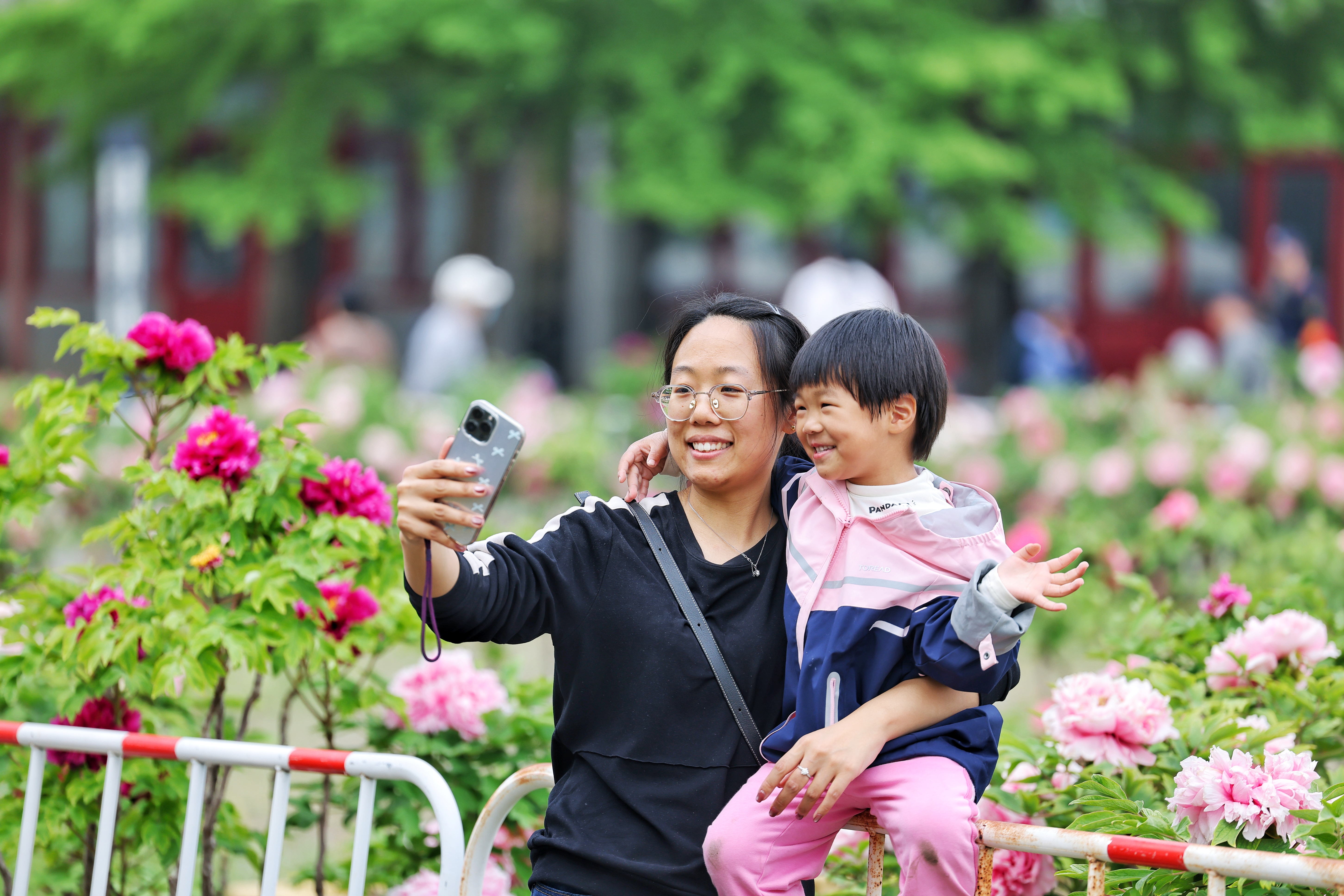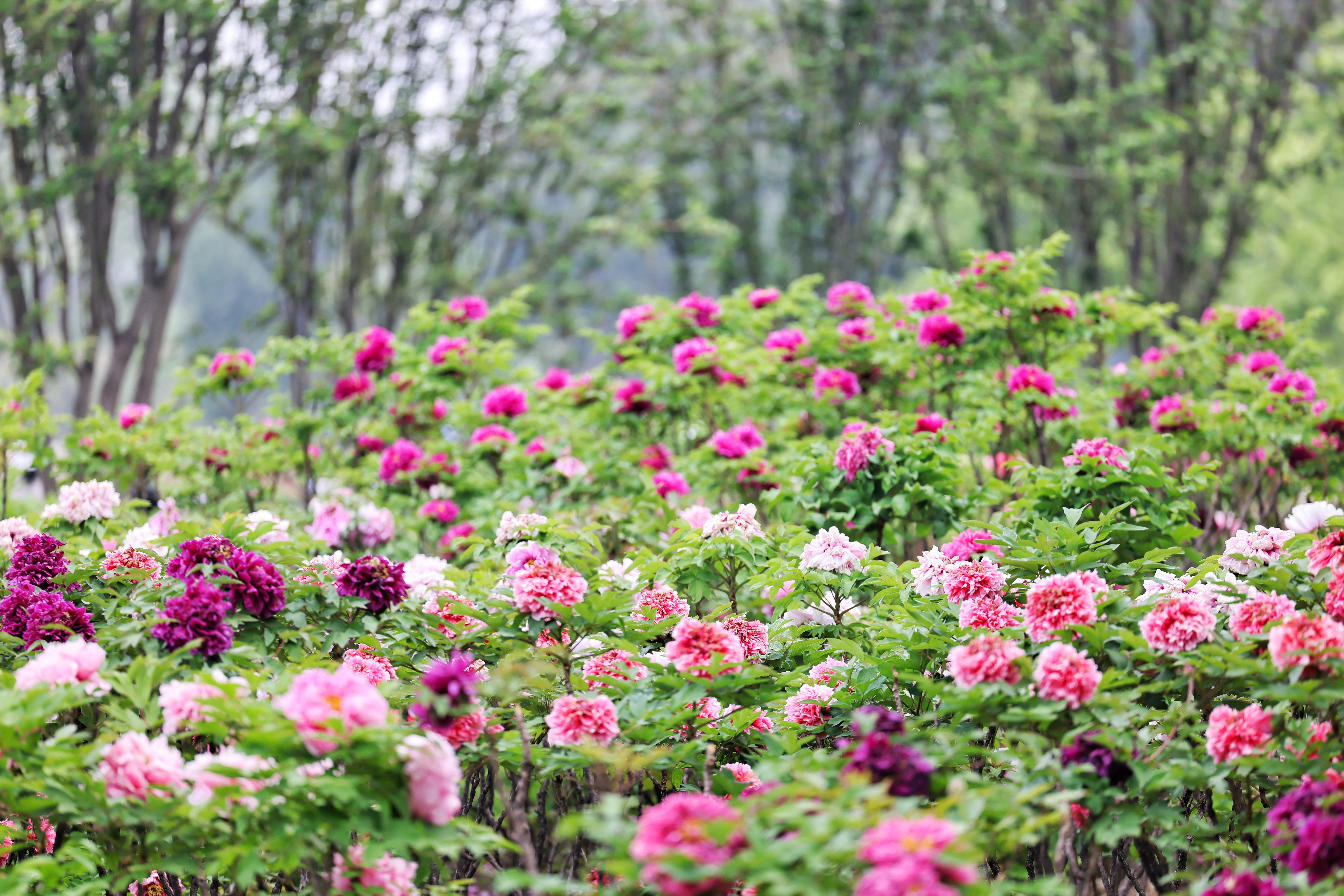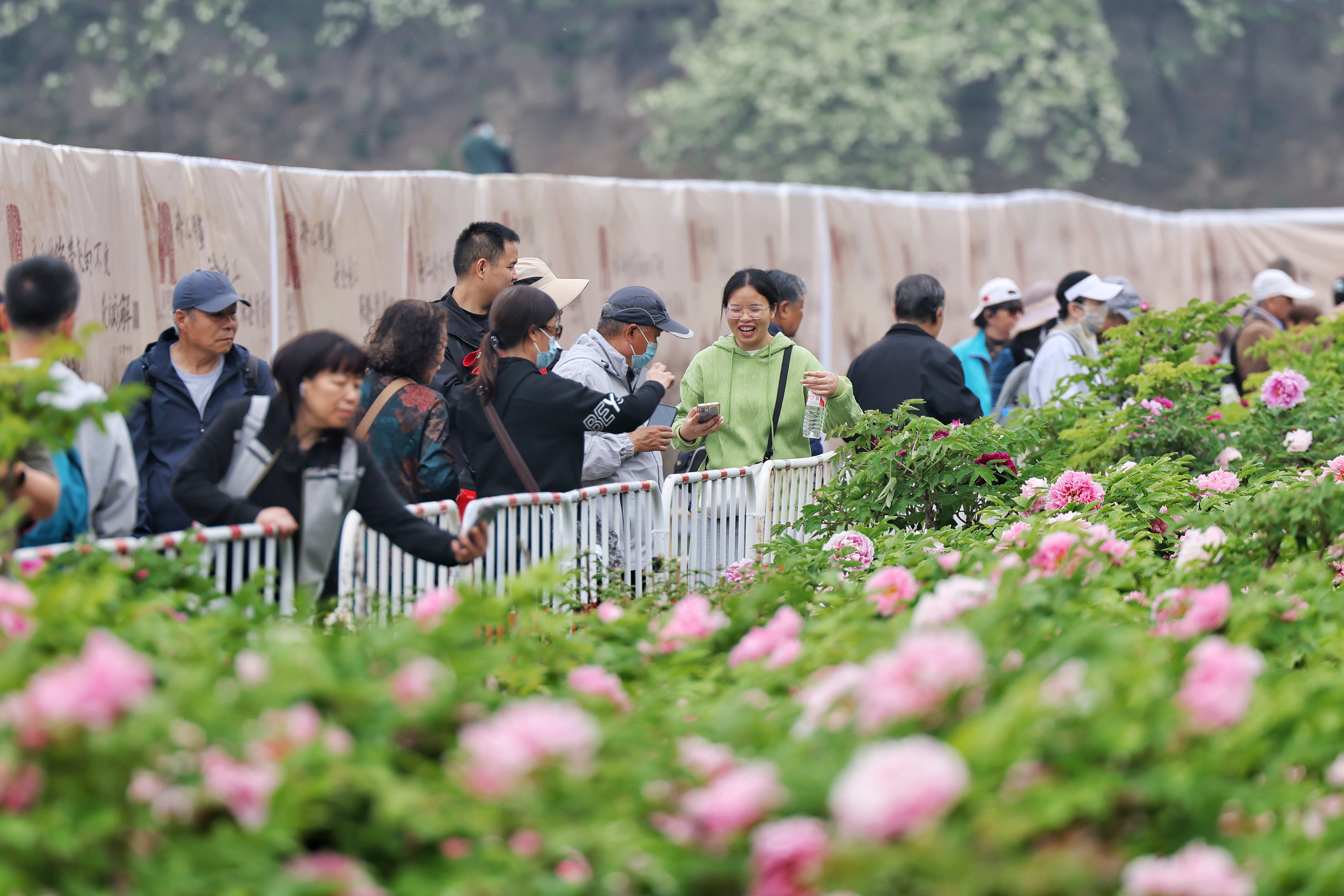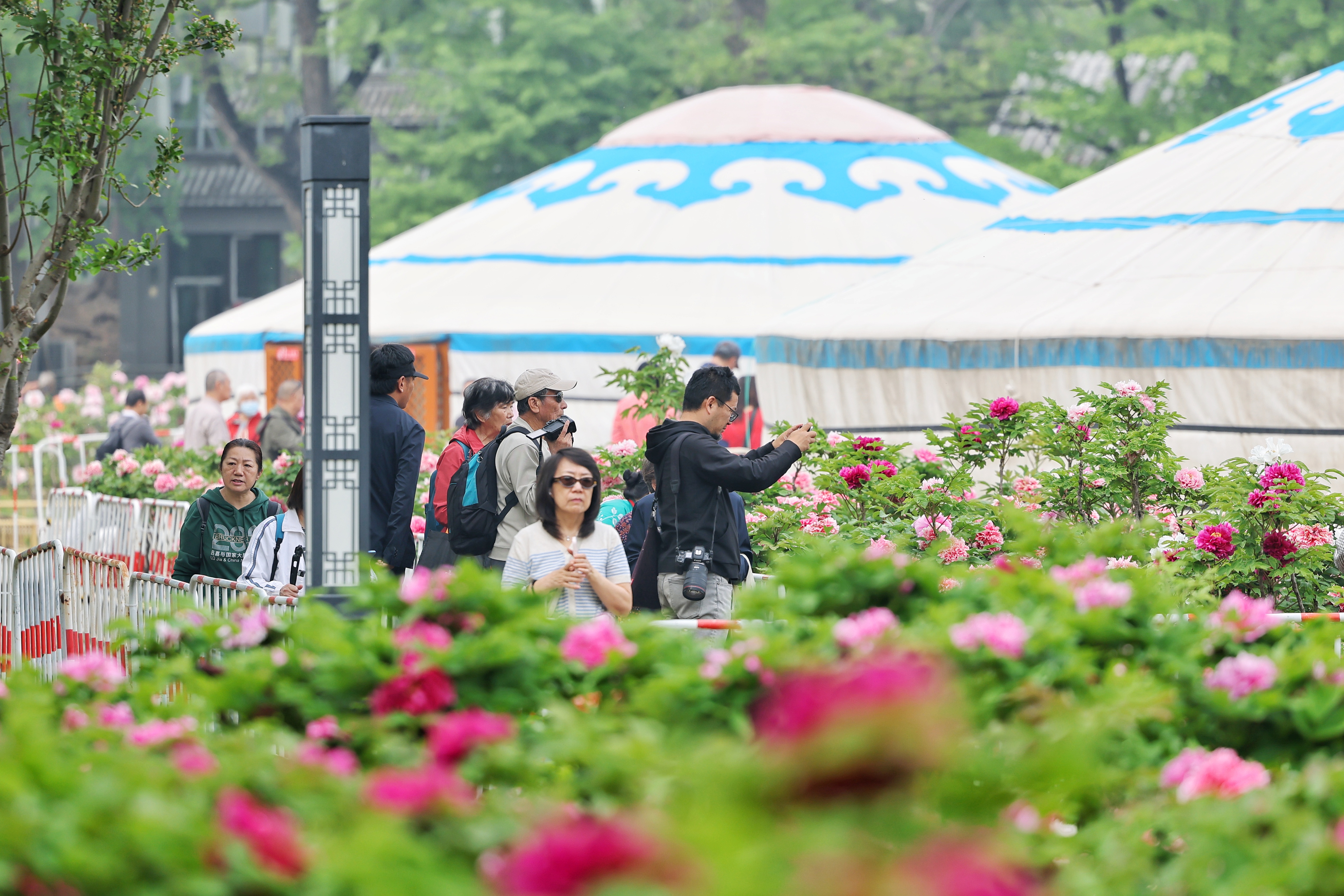 含经堂精品牡丹观赏区汇集了100余个品种牡丹,为游客呈现了一场穿越古今的“国色天香”盛宴。