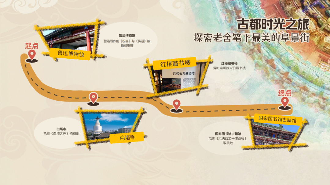 值此第十五届北京国际电影节期间,电影频道与西城区文化和旅游局在“中国电影诞生120周年纪念活动暨《云雀叫天录》见面会”上,特别推出5条“电影+旅游”路线,诚邀您穿越银幕,邂逅电影里的西城故事。