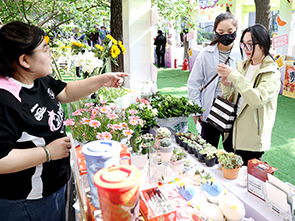 △市民游客在市集摊位前挑选盆栽。吴江/摄