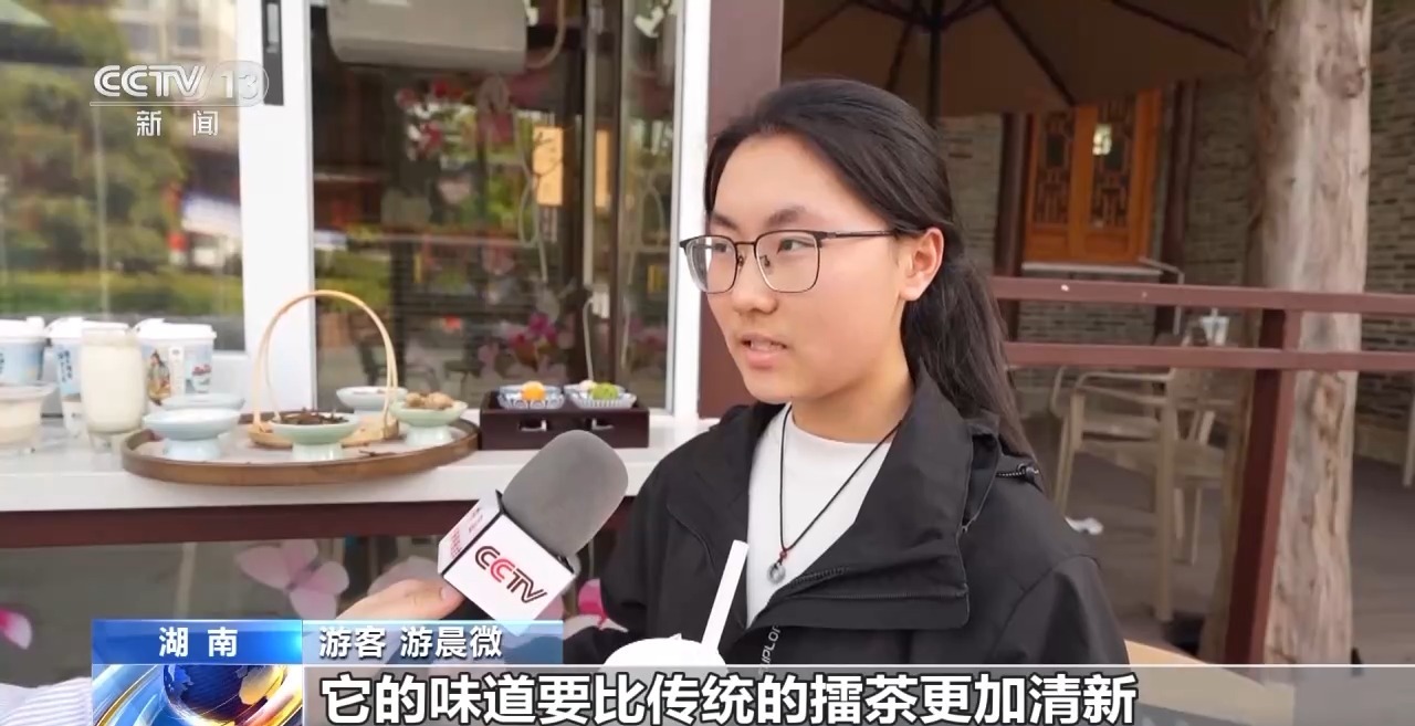 游客 游晨微:它的味道要比传统的擂茶更加清新,很沙的那种质感,然后还有一点淡淡的花果的那种香味,挺好的,就是有一个创新,我相信像我这种年轻人应该会比较喜欢这种味道。