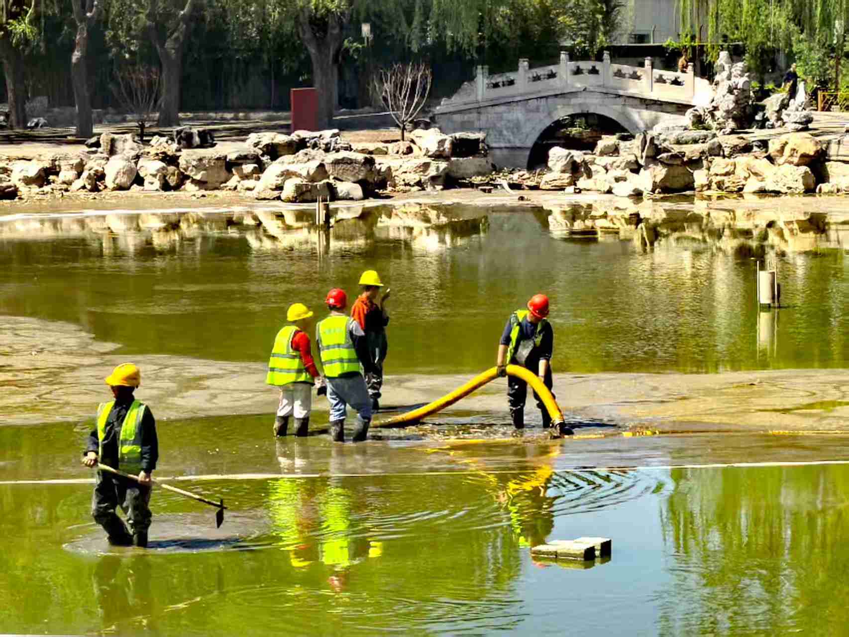 今天北京大观园开始清淤作业,准备迎接五一节长假到来!