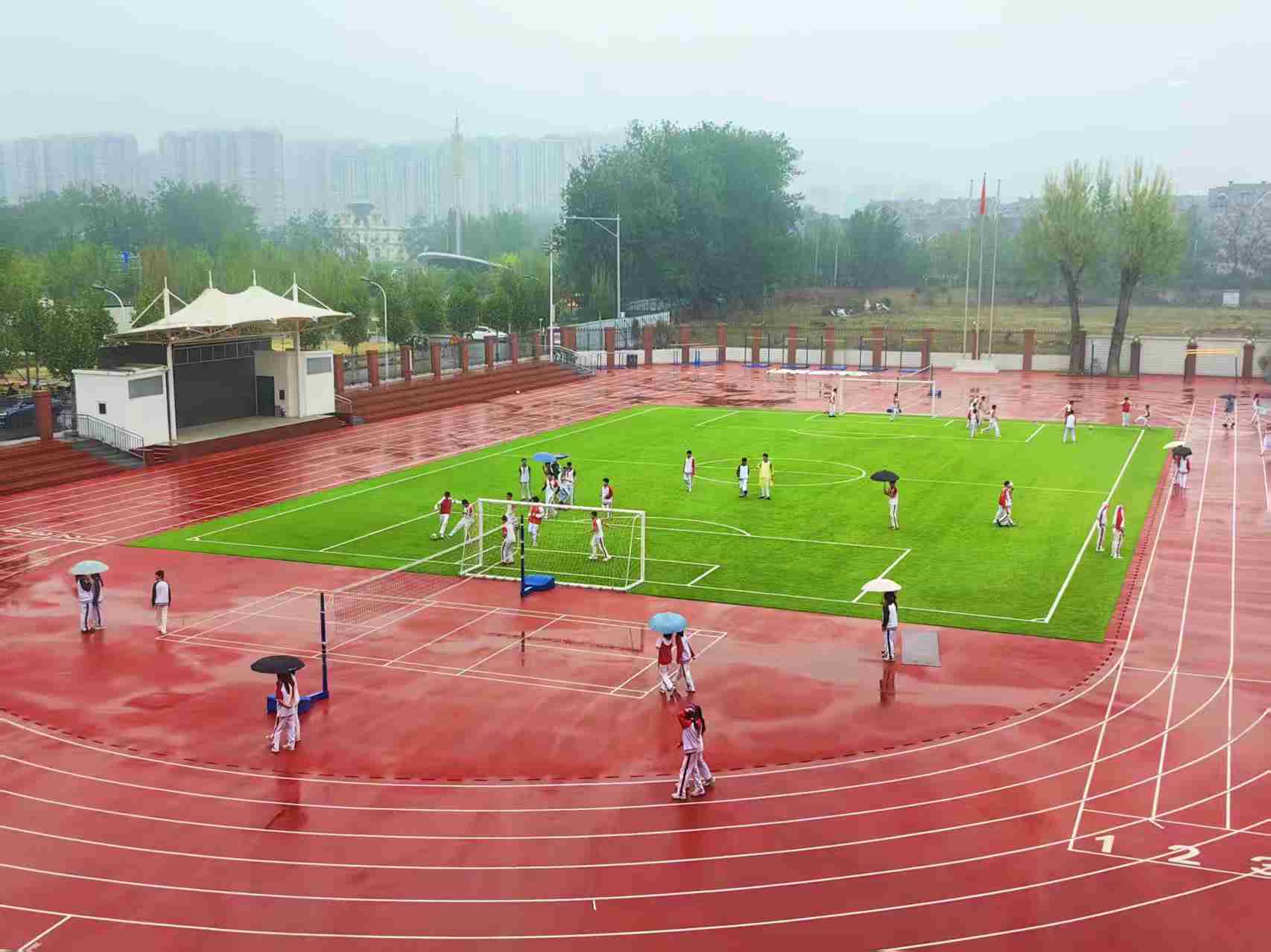 校园雨中即景