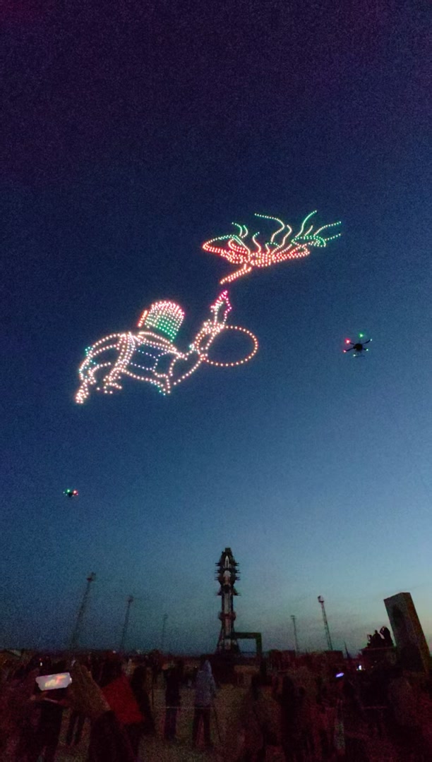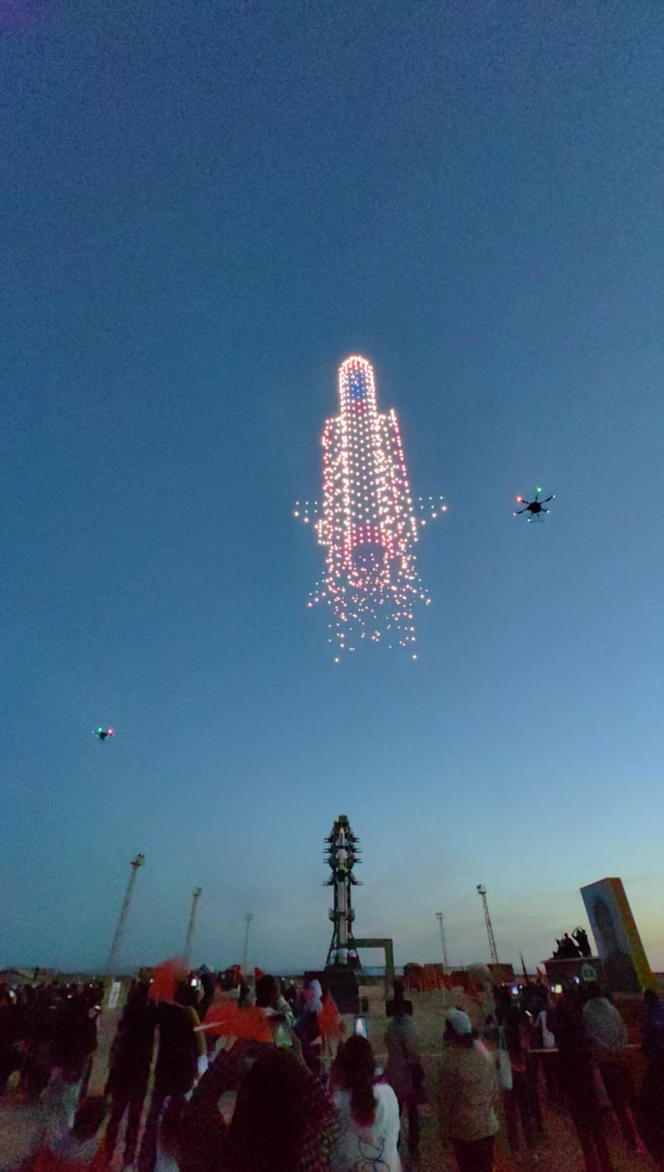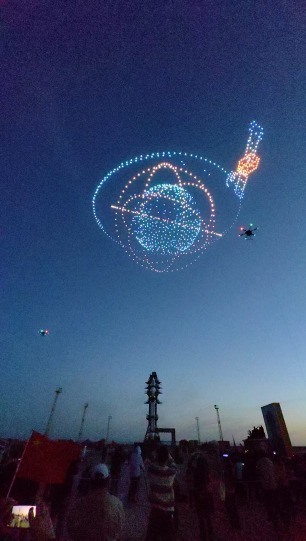 4月23日,我国第一颗人造地球卫星“东方红一号”发射成功55周年即将到来,中国航天日“飞天圆梦,登月有我”主题无人机灯光秀在酒泉卫星发射中心东方红卫星发射塔架处举行。千架无人机变幻,展现了中国航天的发展历程。