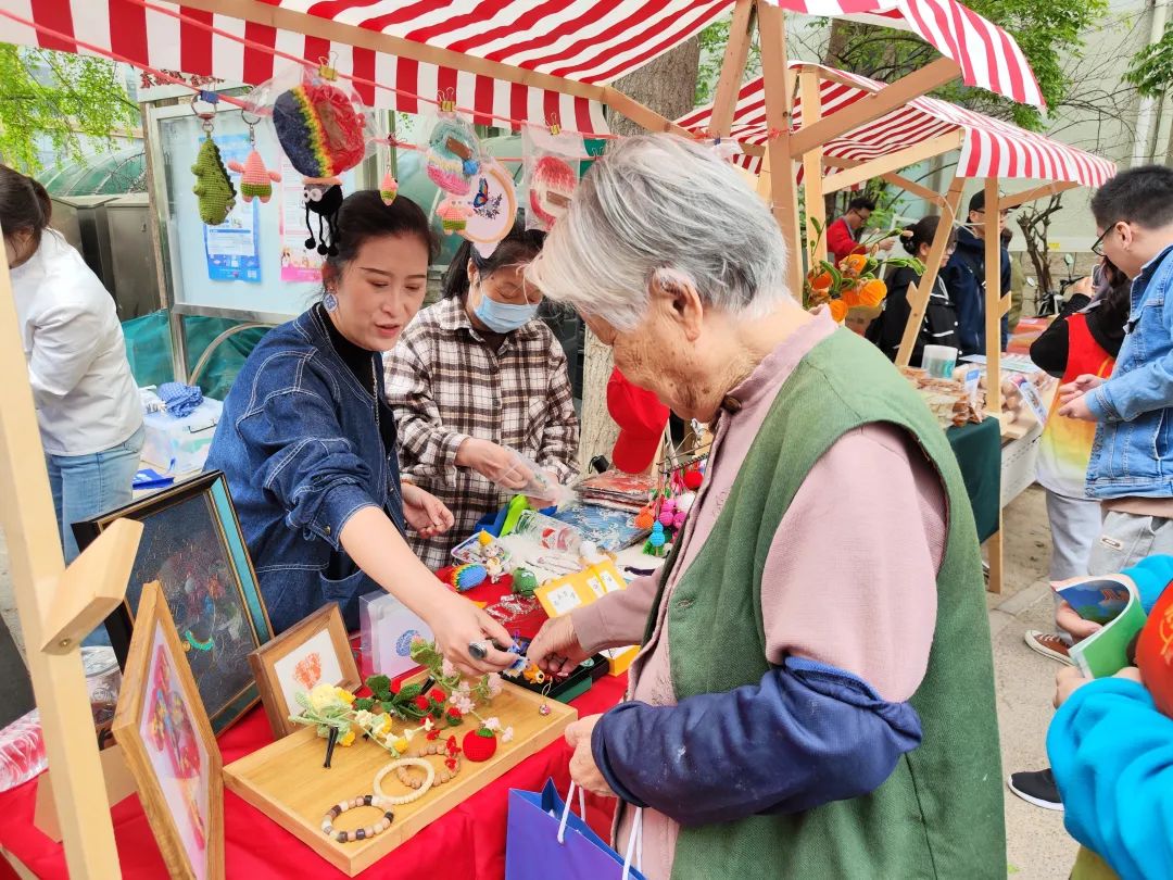 在“帮享”能量站,居民们纷纷写下自己能提供的帮助和需要的支持,一张张“帮享”纸条贴满能量墙,搭建起邻里互助的桥梁。政企互动区内,街道办事处和辖区单位联合为居民提供政策咨询、健康问诊等便民服务;美食惠民区香气四溢,辖区餐饮企业推出的特惠活动让居民们大饱口福;非遗展示区里,旗袍盘扣、掐丝珐琅等传统工艺吸引众人驻足;环保互动区则通过趣味游戏宣传垃圾分类知识,倡导绿色生活理念。