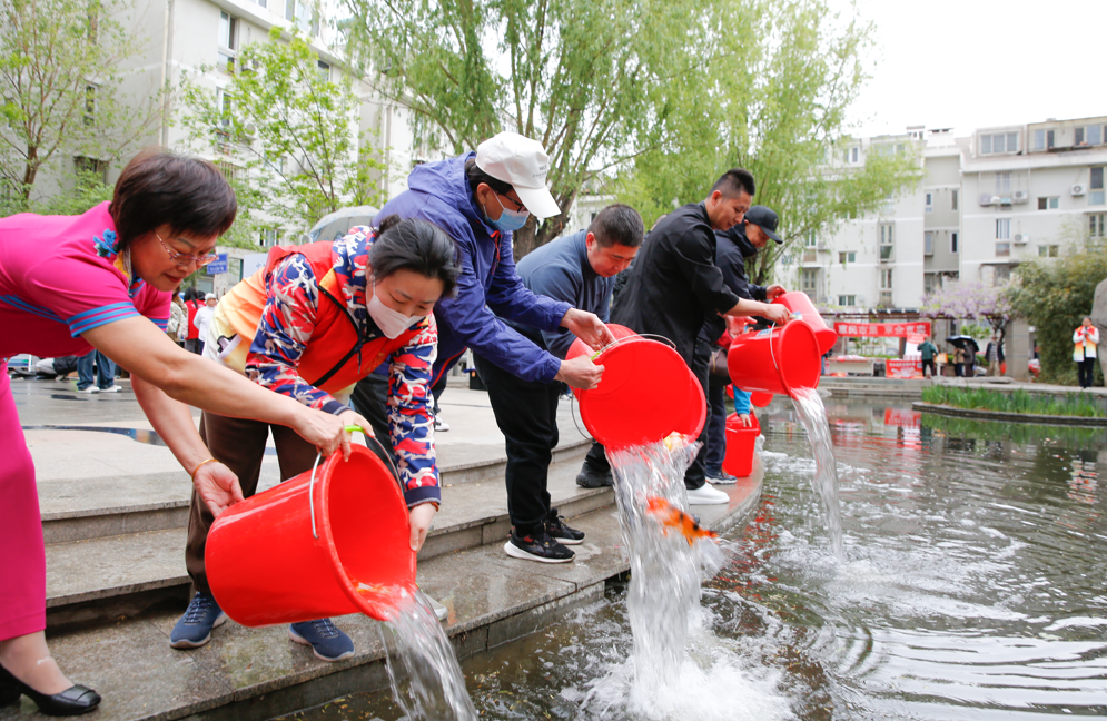 特别引人注目的是金鱼放生活动。一尾尾金鱼跃入池中,激起层层涟漪,居民张大爷激动地说:“看着金鱼池一年比一年好,我们打心眼里高兴!”