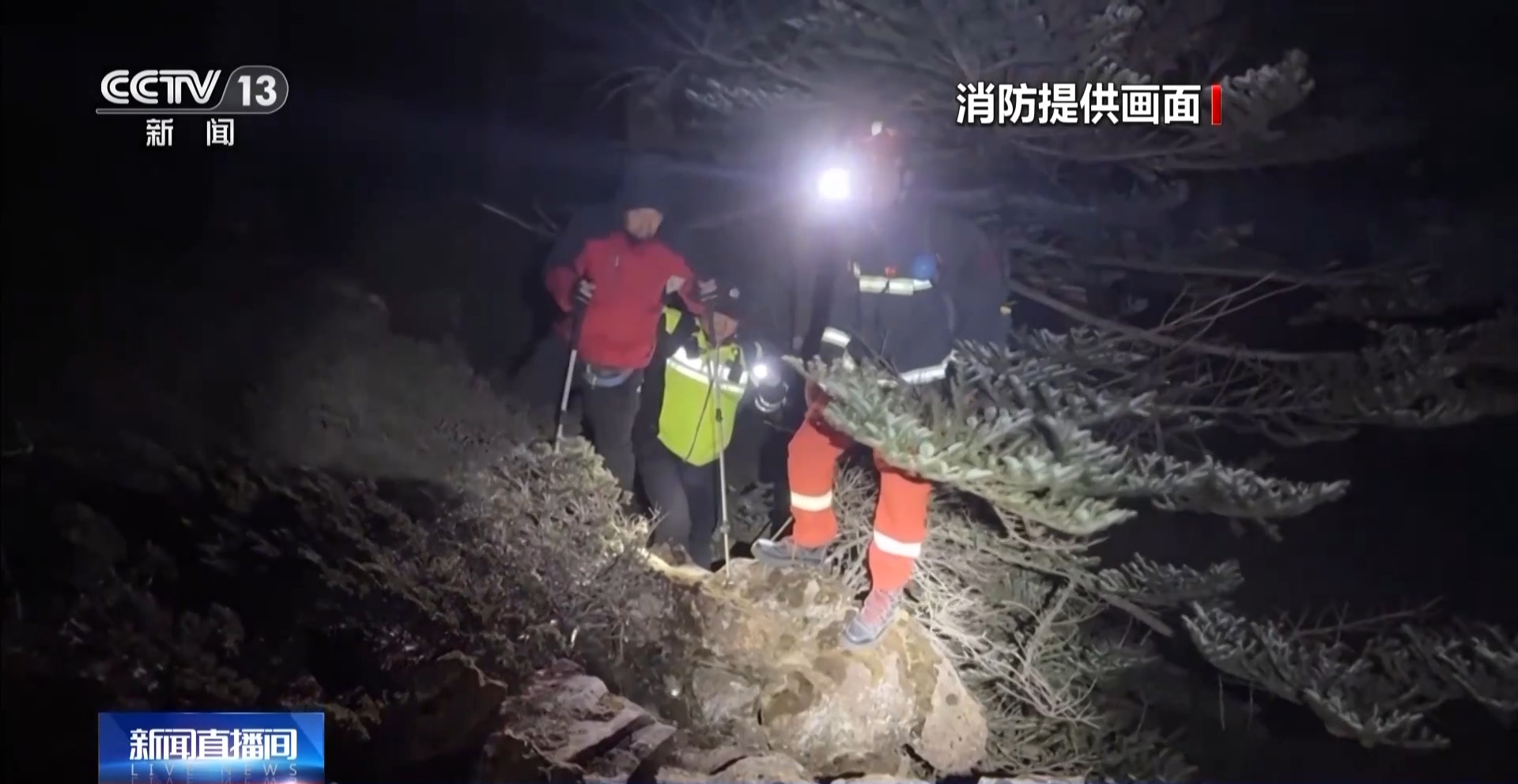 消防人员为被困的两人补水补充能量,护送他们下山。40分钟后,被困人员安全脱困。