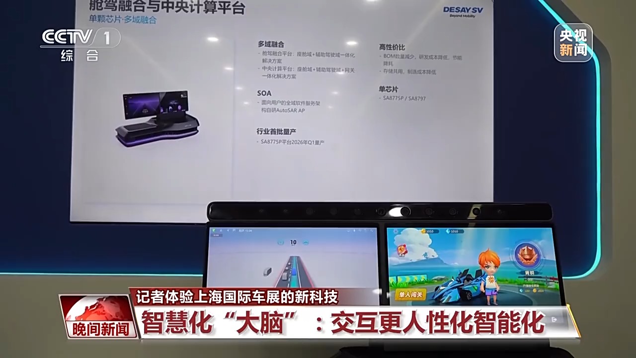 总台央视记者 杨子清:我手上的这颗芯片,可以说是全车最为重要的“大脑”,这颗芯片是我国自主研发的,全球首颗量产上车的车规级5纳米智能芯片,有了这颗芯片,未来的汽车会更加智能。
