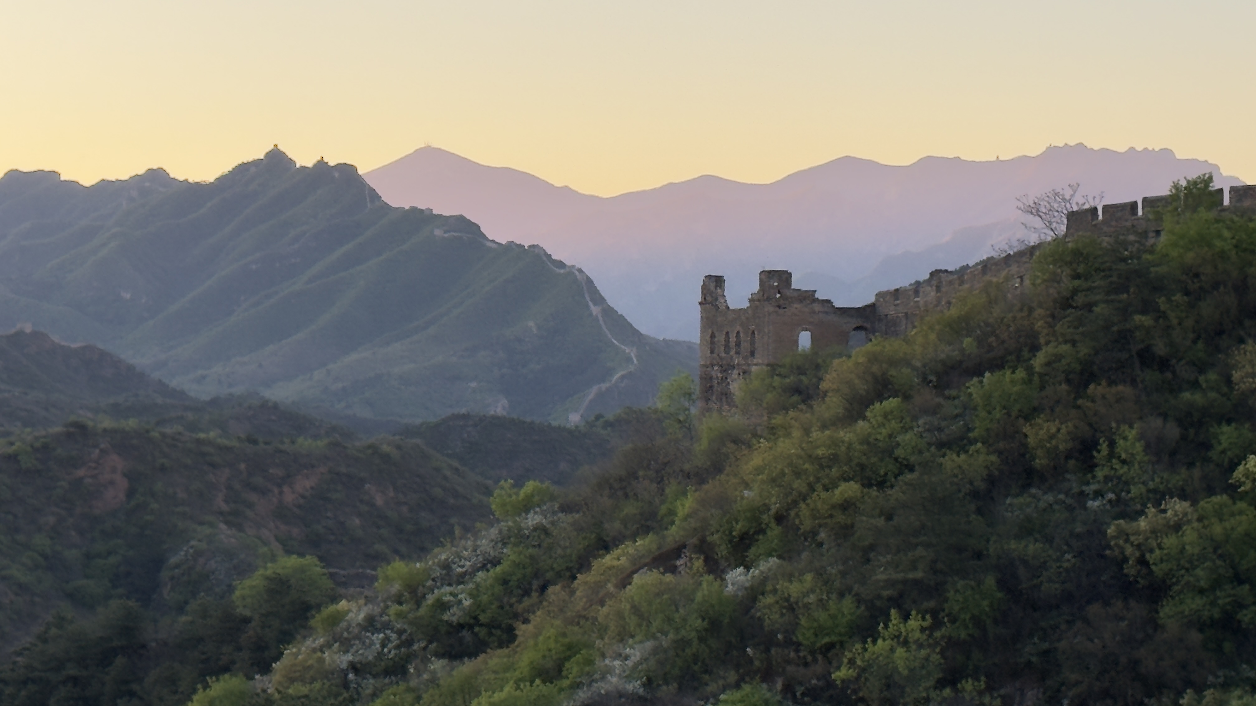 河北滦平:金山岭长城晨光映照景如画
