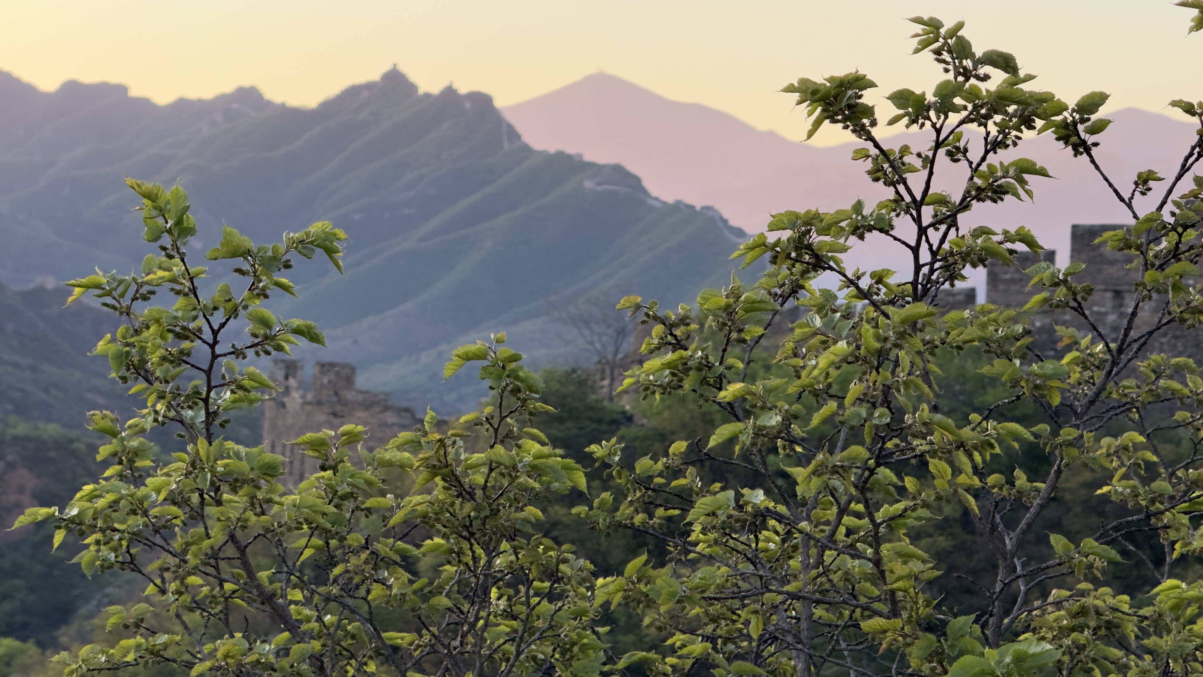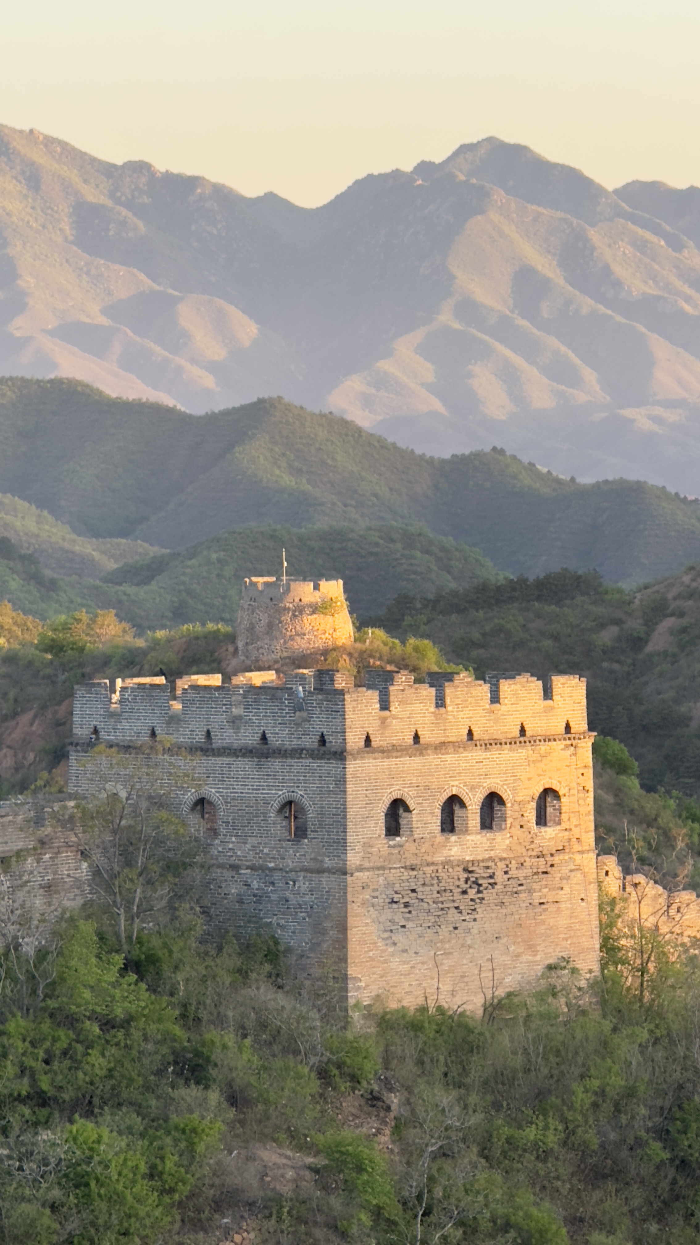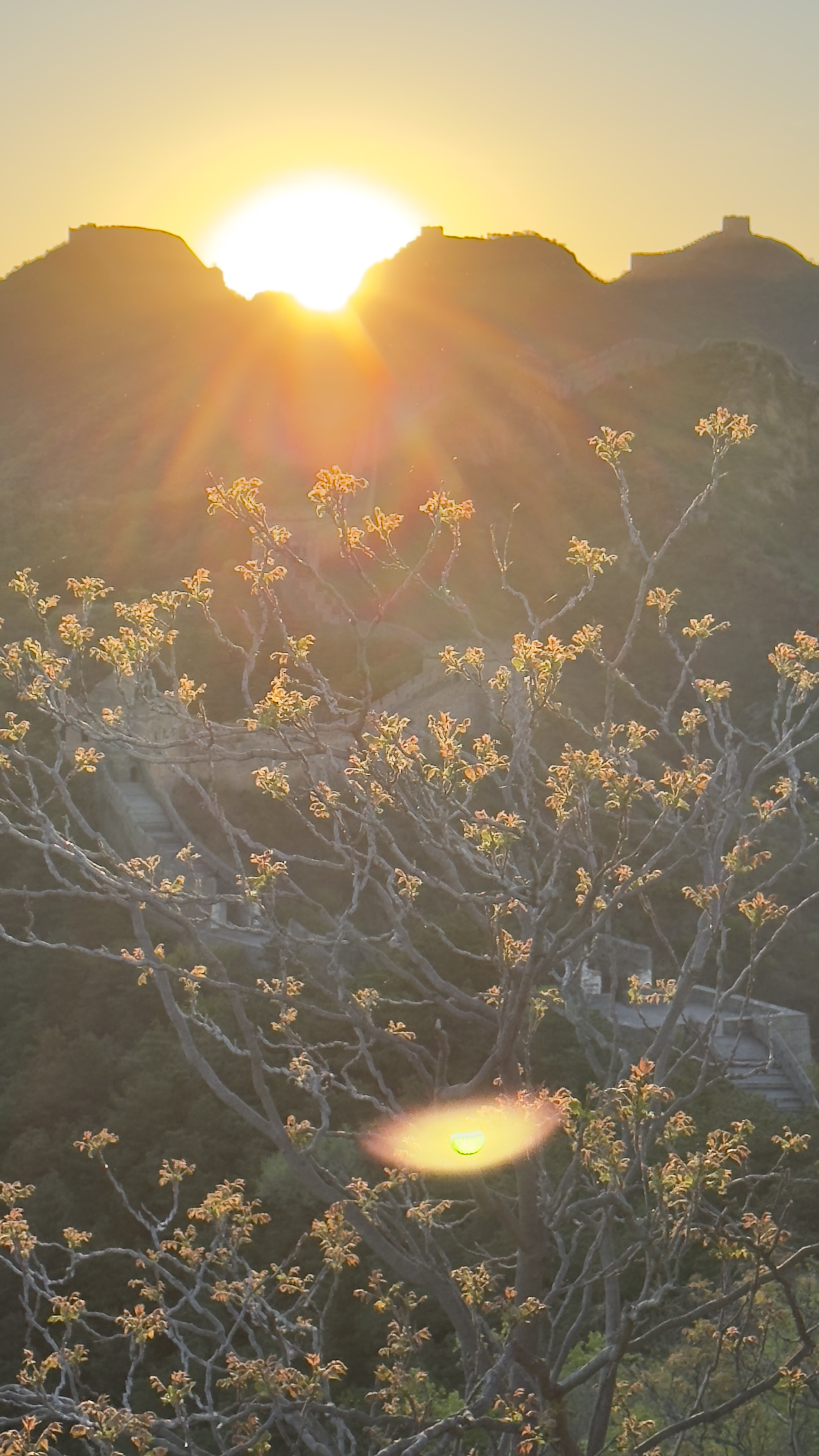 4月28日清晨,河北省承德市滦平县金山岭长城,草木葱茏,生机盎然,在晨光照耀下与古长城相互辉映,风光旖旎,景色宜人美丽。