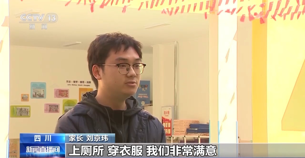 家长 刘京玮:孩子在托班里学会了自主吃饭、上厕所、穿衣服,我们非常满意。