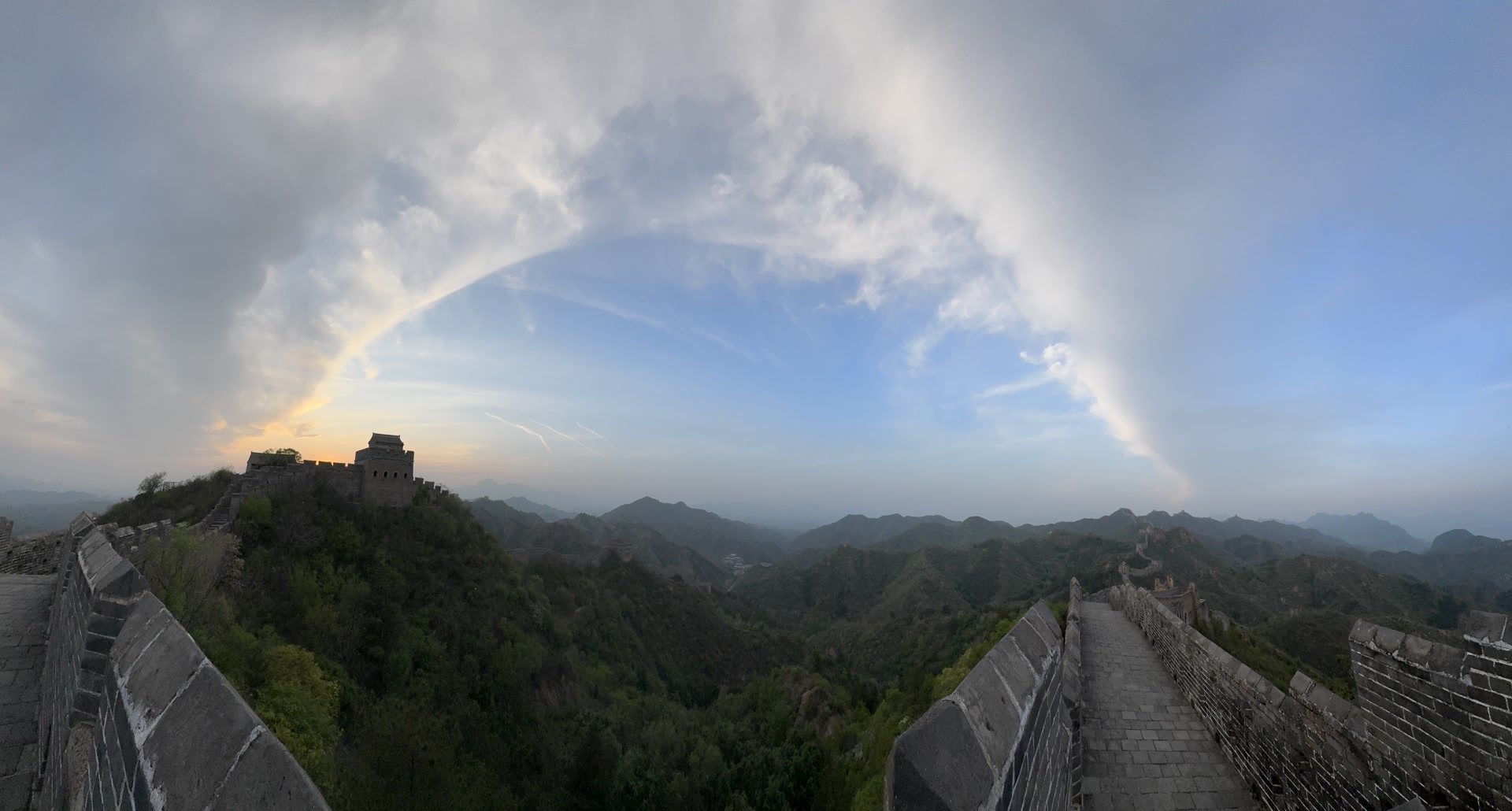 4月29日傍晚,河北省承德市滦平县金山岭长城,夕阳晚霞,美景如画。