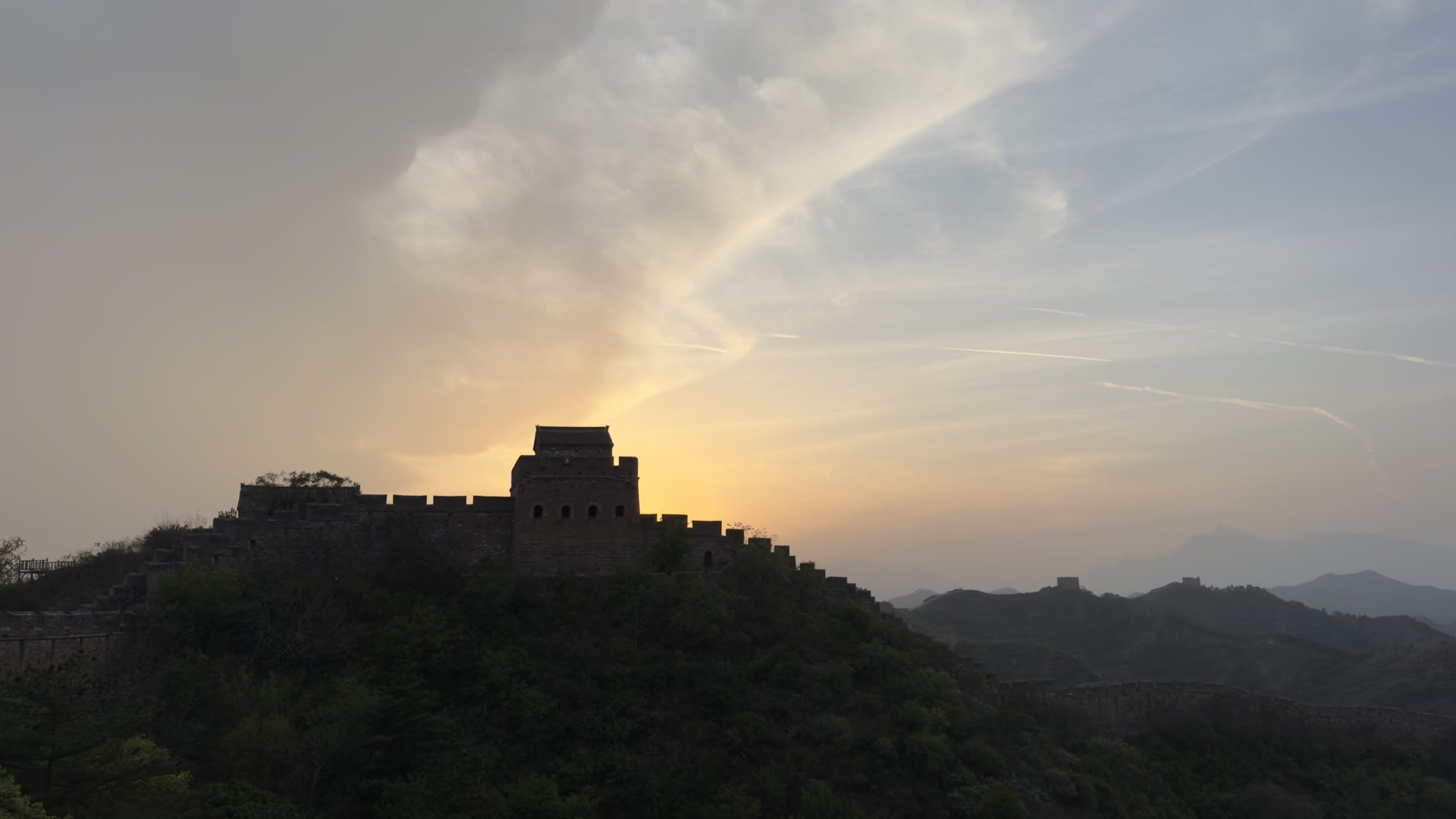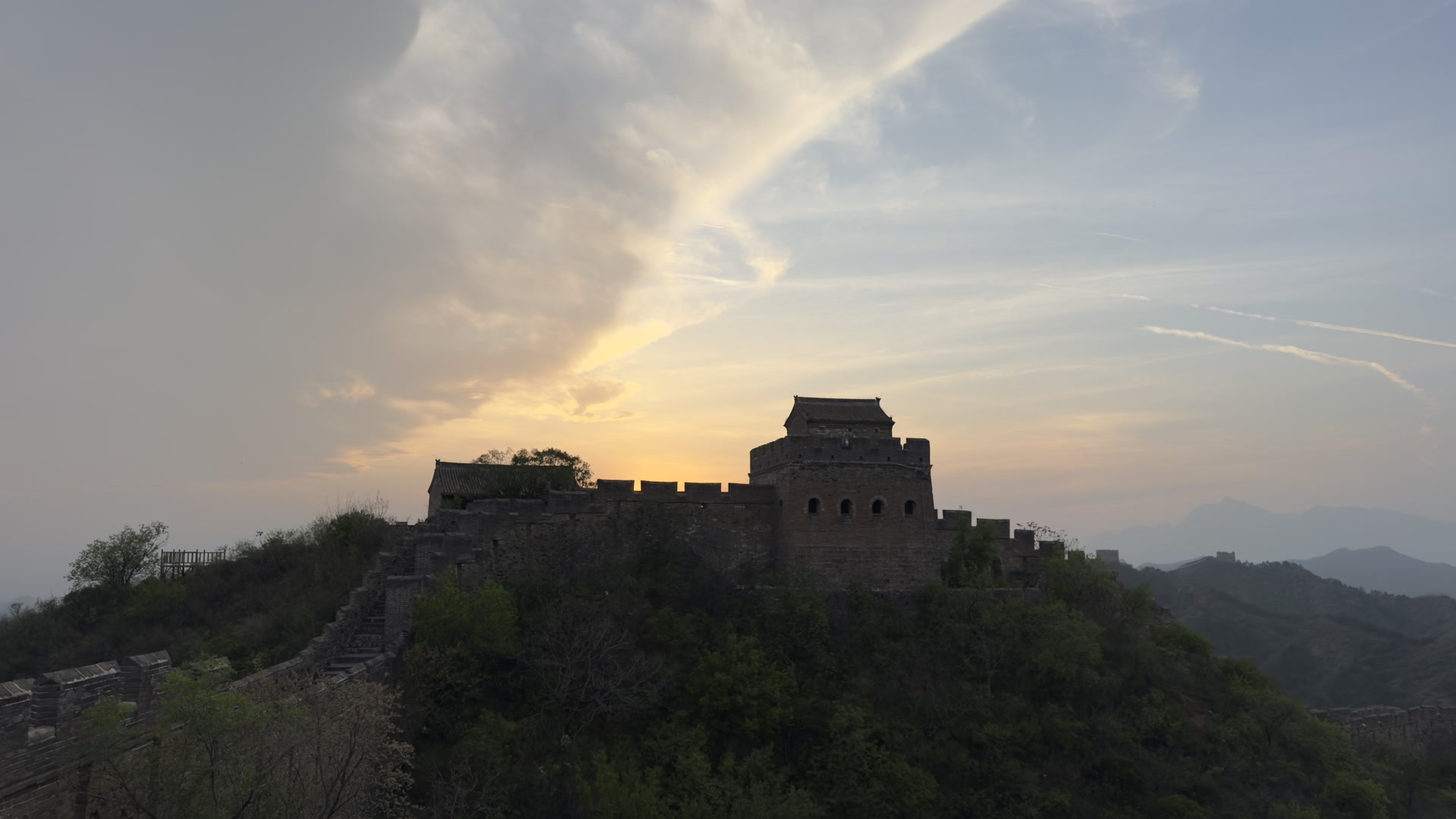 河北滦平:金山岭长城夕阳晚霞美如画