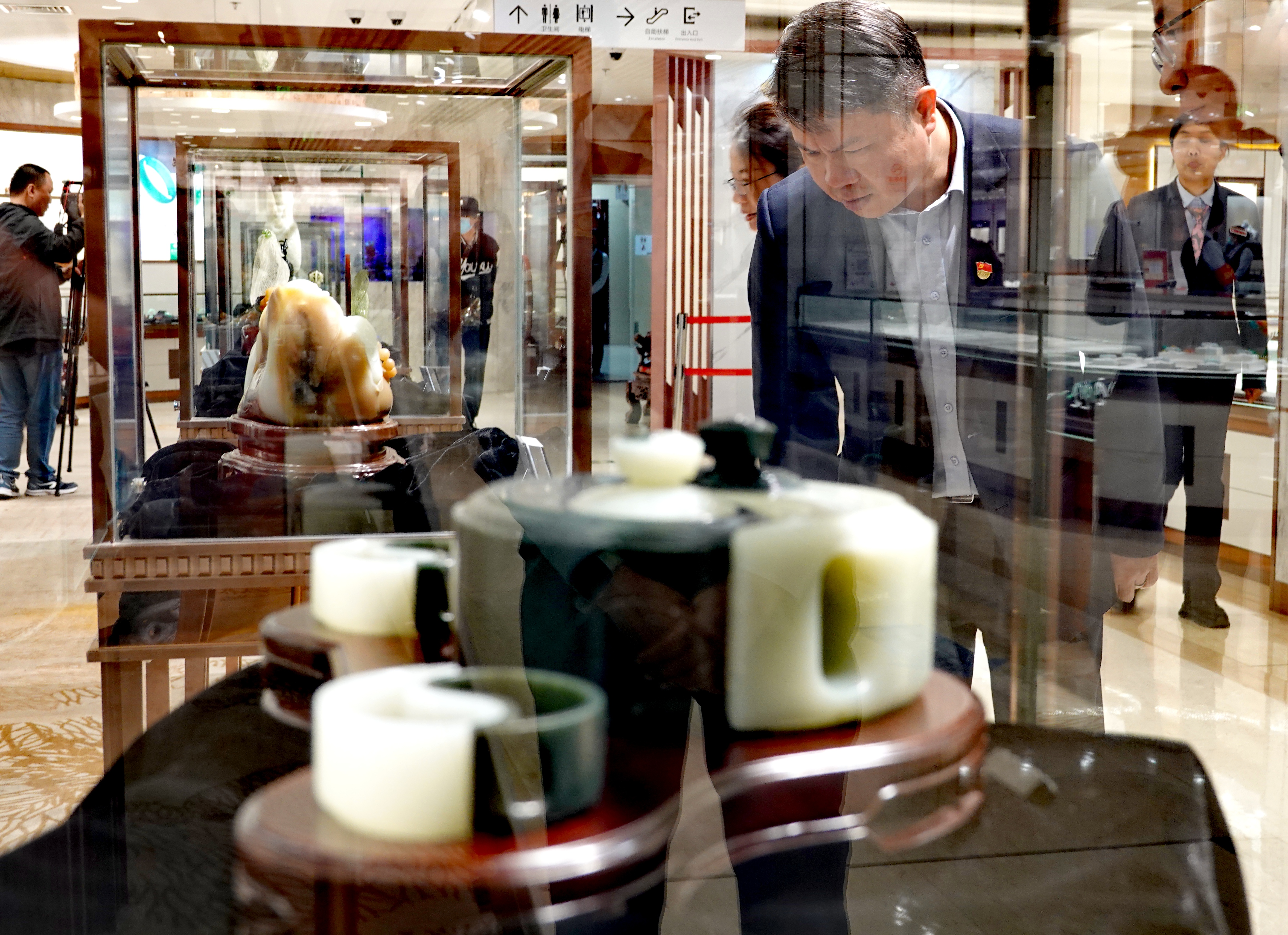 4月29日,“菜百与大师同行——中华玉都玉石雕刻大师亲工作品展”于菜百总店盛大启幕。