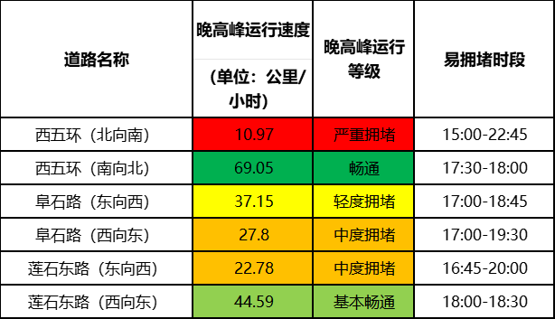 劳动节前最后一个工作日晚高峰主要道路运行速度预测