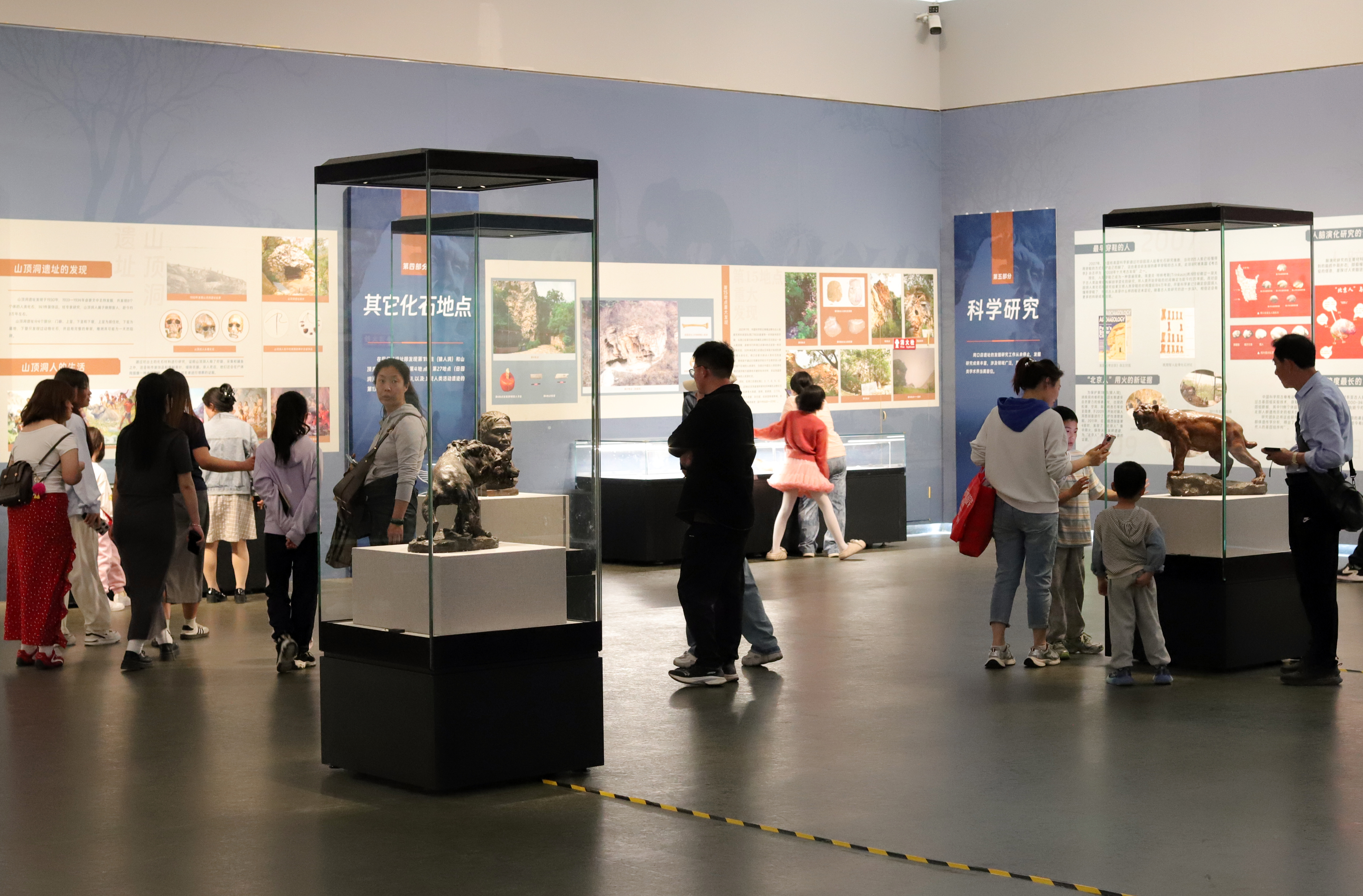 此次展览分为“惊世发现”“北京人”“山顶洞人”“其他化石地点”“科学研究”“国宝寻踪”“保护发展”等七大板块,通过100余件展品和大量图片、文献资料,系统梳理了周口店遗址的发掘历程与研究成果,生动呈现了远古人类的生活场景,引领观众穿越时空,探寻远古人类文明的奥秘,感受中华文明的源远流长。