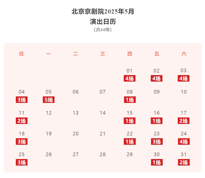 五月,我院将带来44场精彩演出,感谢您始终如一的关注与支持,让我们相约剧场,于锣鼓铿锵中沉醉戏曲艺术,于水袖翻飞间传承文化薪火,以梨园雅韵奏响传统文化最强音!后续演出信息将通过官方平台持续更新,敬请期待!