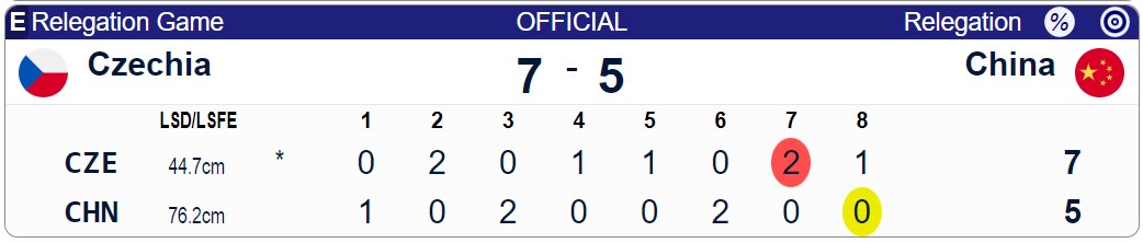 最后一局,处于落后的中国队力图扭转局势,但关键时刻击打出现失误,反而再丢一分。如此一来,中国组合以5比7不敌捷克队,中国队将在下届混双世锦赛中降入B级。此外,队伍也没能通过世锦赛“直通”米兰冬奥会,只能寄望于年底有16对选手参加的冬奥落选赛。