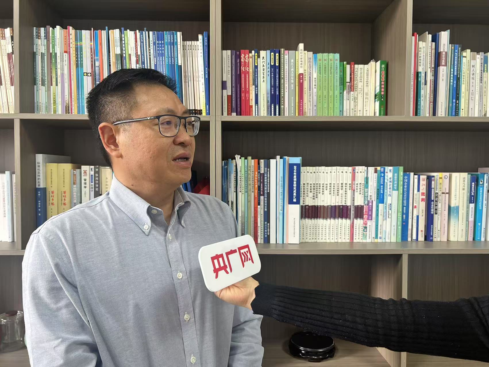 浙江工商大学文化和旅游创新发展研究院院长、二级教授易开刚接受央广网记者采访(央广网记者 孙俊 摄)