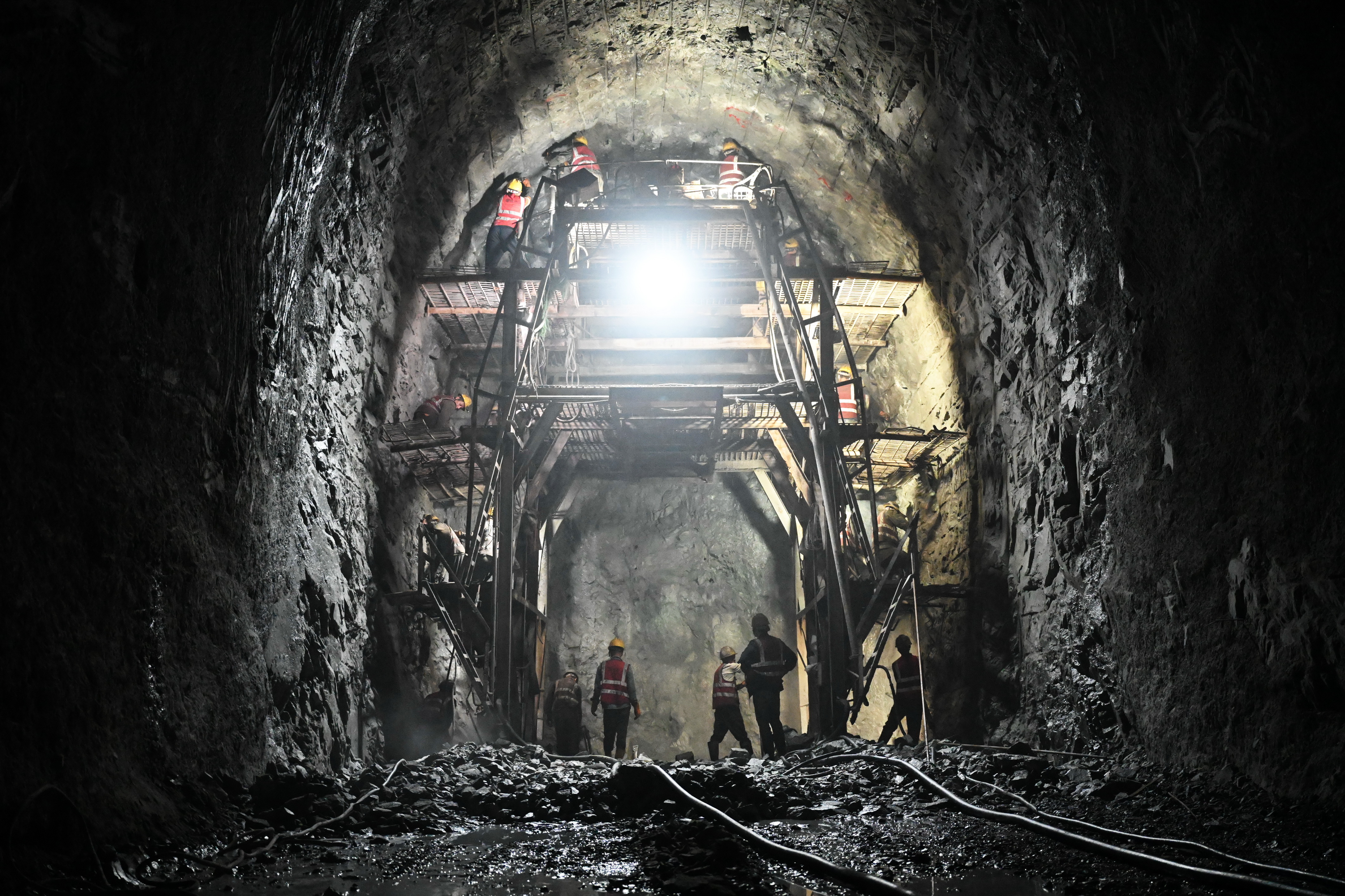 5月1日,中铁二十局施工人员在福州港口后方铁路尖峰山隧道内施工。