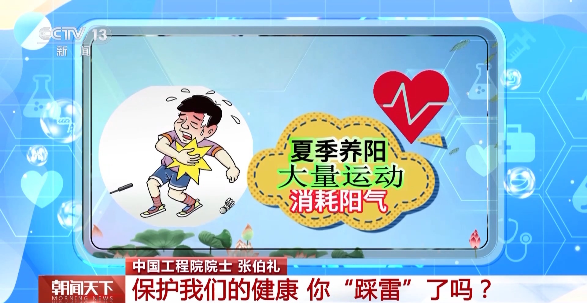 中国工程院院士 张伯礼:夏天酷热,所以容易出很多的汗,汗为心之液,出汗过多了,可能出现心悸,心律不齐等状况。同时夏天炎热,很多人烦躁、心神不安,影响睡眠,甚至产生了焦虑等情绪问题,这些都归属于心,心主血脉, 所以我们一般认为在夏季应该是养心的季节。