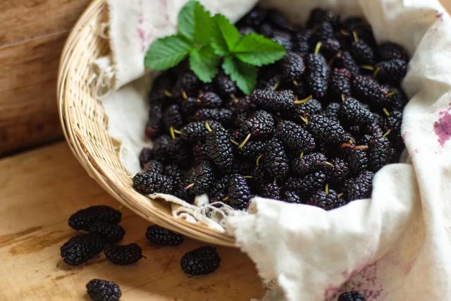 抗氧化能力强:桑葚的花青素含量高达14—347毫克/100克,比绝大多数水果高,且颜色越深,花青素含量越高。桑葚的维生素C含量也很高(36.4毫克/100克),可以和橘子、橙子比肩。两者联合,有助于抗氧化,叫一声“抗氧化王者”并不为过。