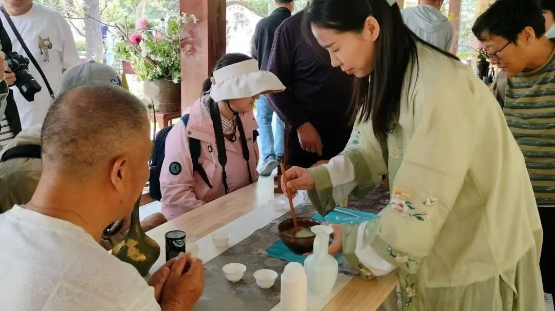 活动期间,游客在古琴的美妙旋律中,亲身体验了宋代点茶的独特魅力。