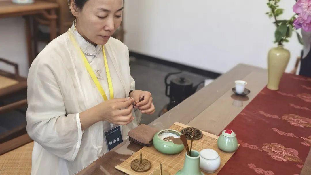 宋代点茶,讲究 “色香味形” 俱全,从碾茶、罗茶、候汤、熁盏,到注水、击拂,每一个步骤都蕴含着古人的智慧与匠心。当茶筅在茶盏中轻盈舞动,白色的茶汤泛起细腻的泡沫,仿佛一朵盛开在盏中的雪花,让游客感受到了穿越千年的风雅,让心灵在古刹的宁静中得到了片刻的栖息。
