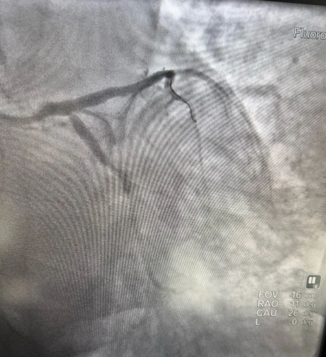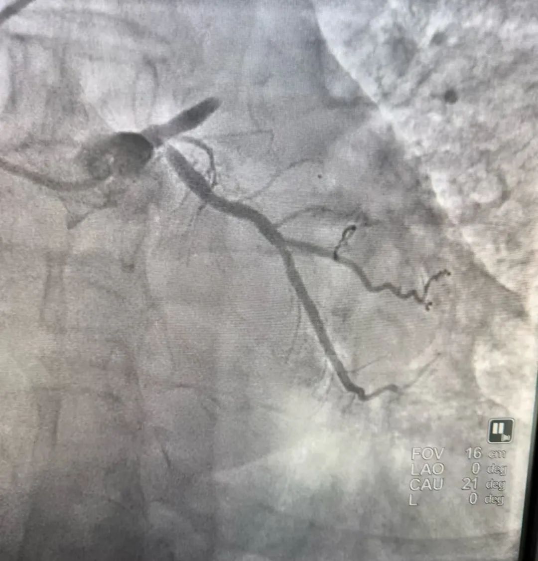 造影的结果正如我们预料的一样,前降支近端100%的闭塞。我们手术仅用时15分钟就快速地给病人开通了血管,植入了一枚支架。操作完成后,患者症状明显改善,心电图恢复正常,患者得救了。