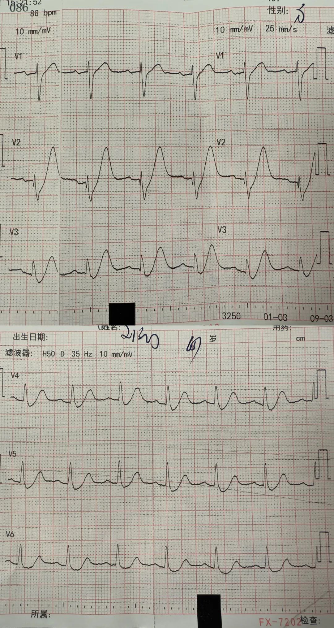 看到心电图后,急诊科医生立即请心内科会诊,正在值班的我接到电话便立即来到急诊科,现场患者心电图的异常改变引起了我的高度关注!