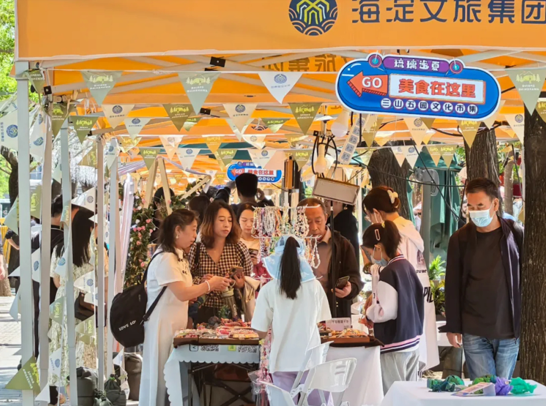 市集创新推出的文创产品广受欢迎。融入海淀元素的文创雪糕、学术咖啡、太空啤酒等特色产品,以及“小酒窝”学术主题酒咖的“日咖夜酒”模式,为游客提供别样体验。市集还设置雅韵艺术装置和趣味集章打卡活动,将三山五园经典地标刻版收藏,增强游客参与感。