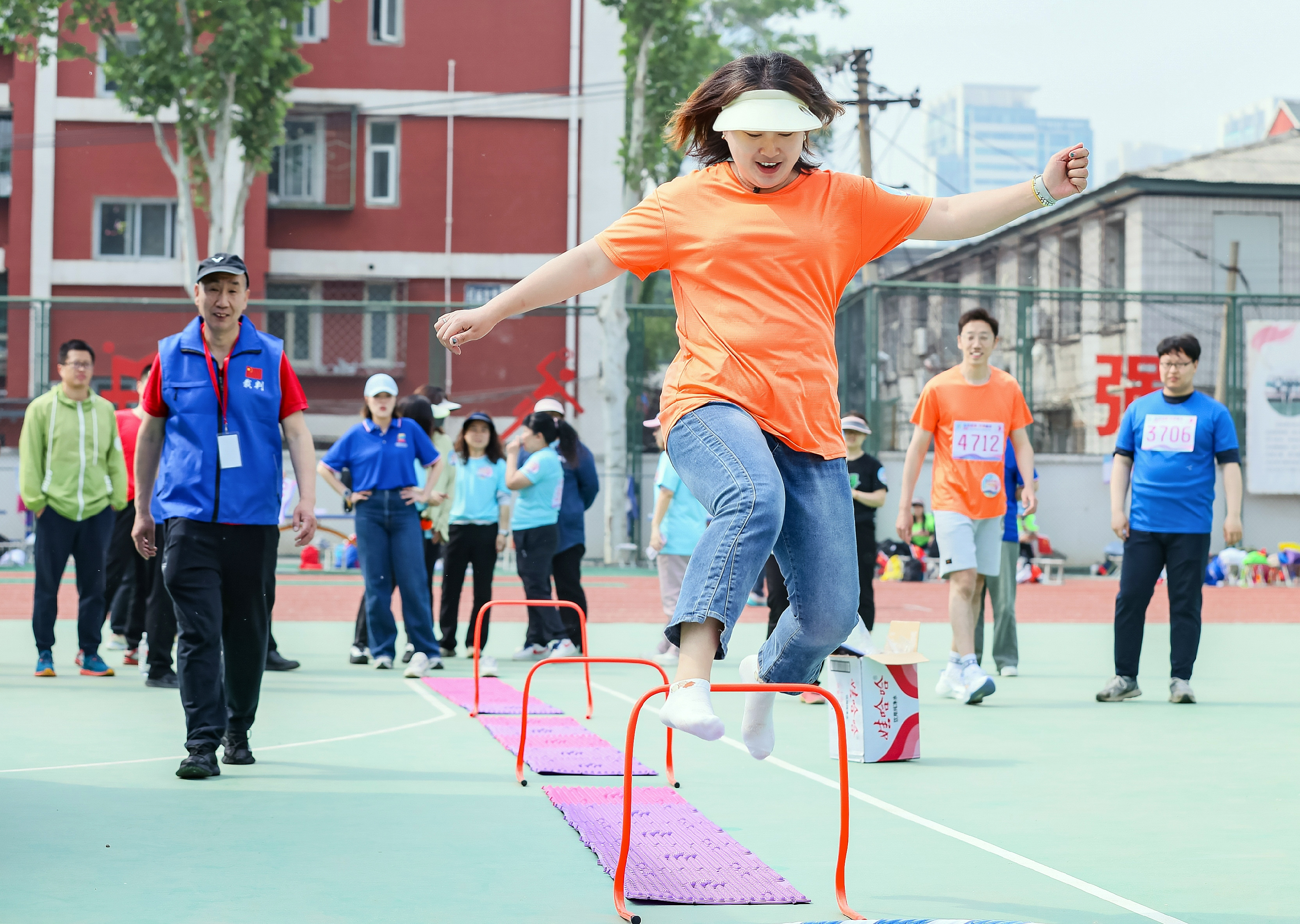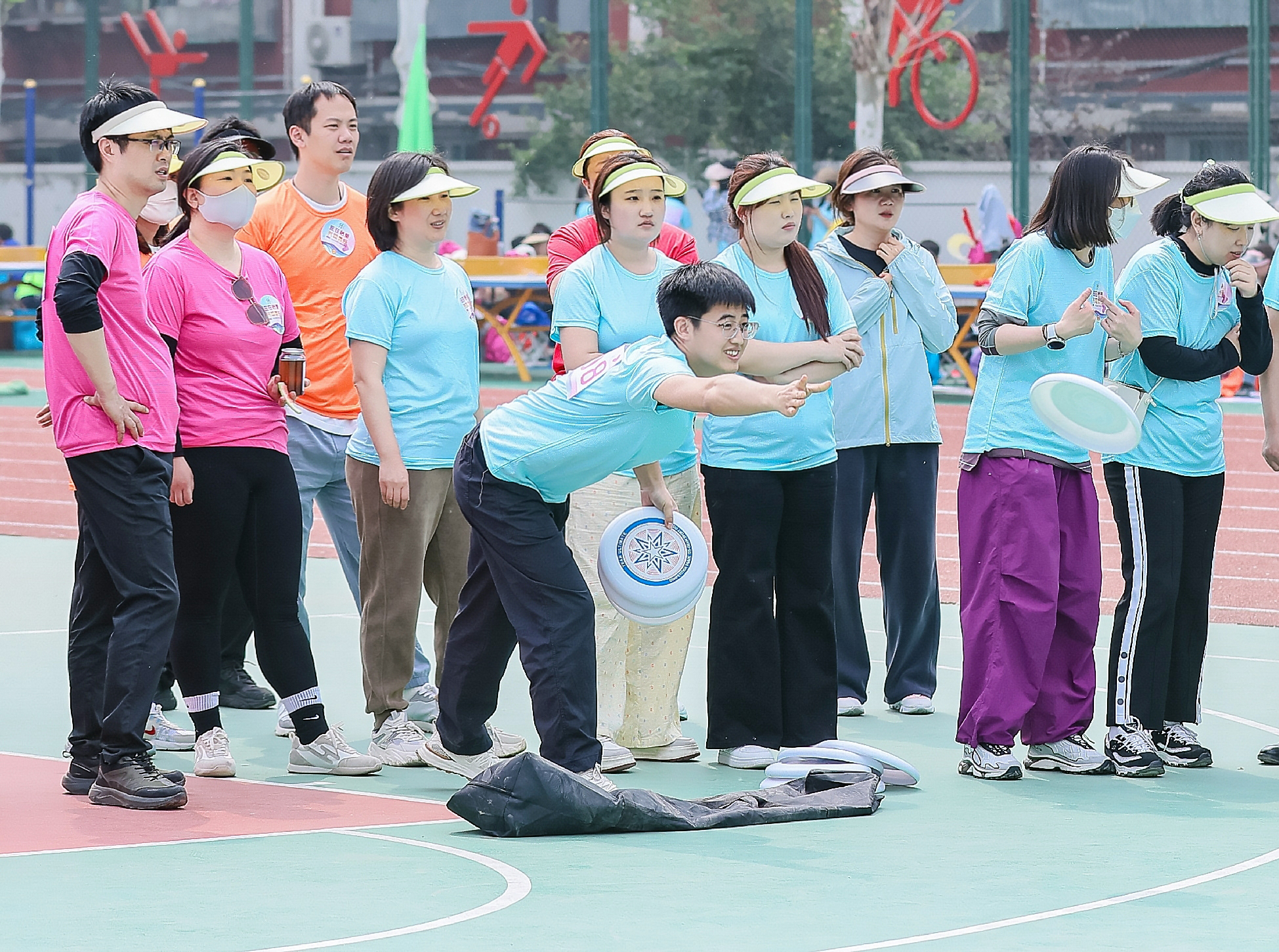 此次运动会设置五大个人竞技项目,既有考验综合能力的“铁人五项”、运球绕桩和知识竞答;也有展现精准度的趣味投篮,篮球架特别设置可升降高度,让不同身高的职工同台竞技。自行车慢骑中,参赛者需在15米赛道内保持平衡且用时最长者胜出。流光飞碟项目中,选手们手持特制飞盘穿越环形障碍;旋风舞动环节则结合韵律操与呼啦圈技巧,成为年轻职工展示活力的舞台。