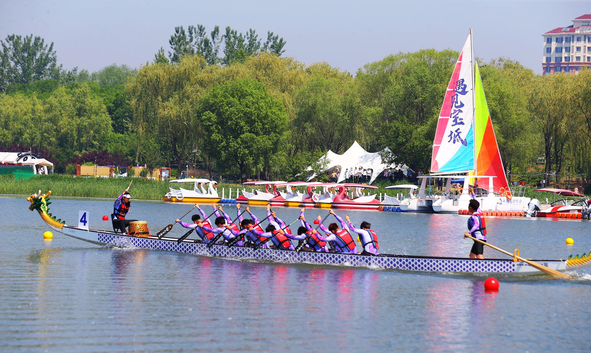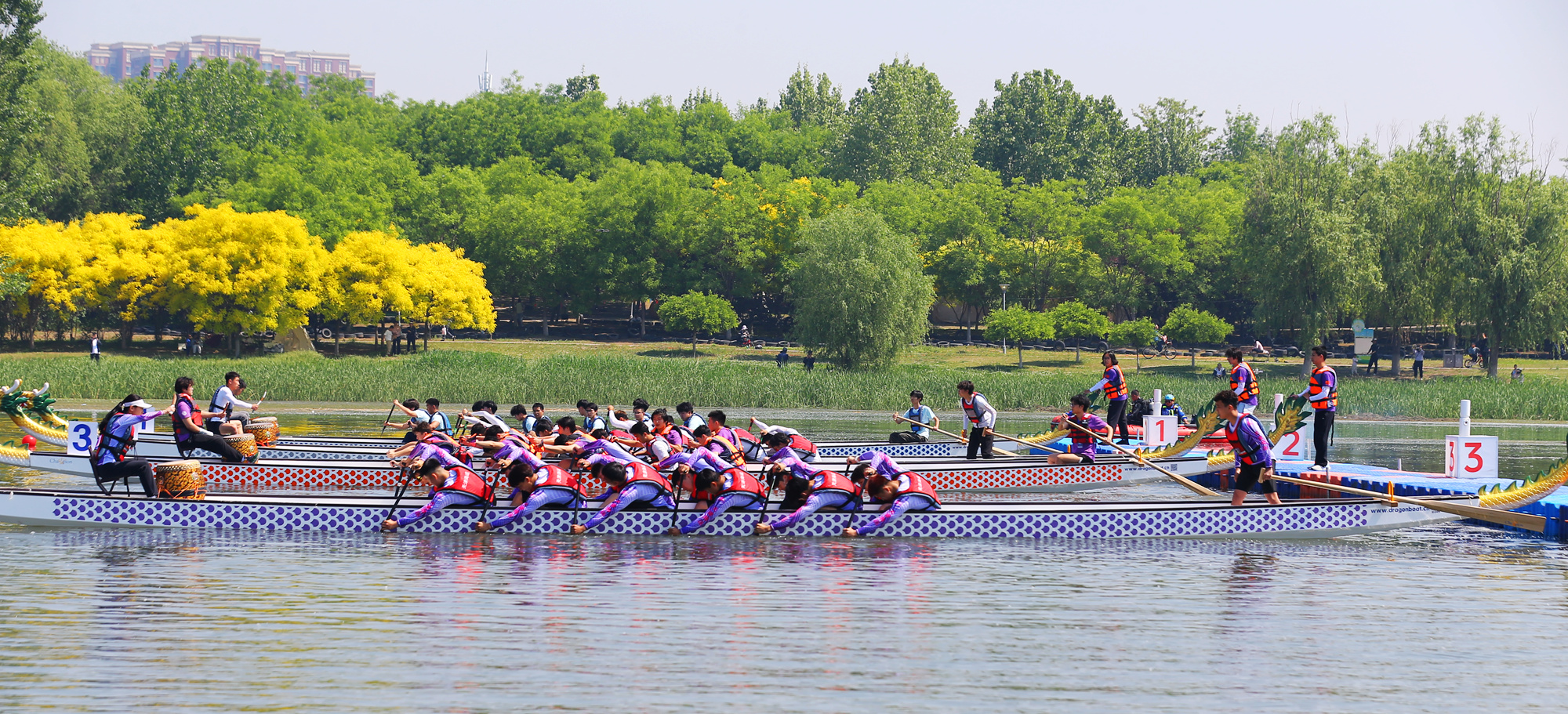 龙舟竞渡,不只是竞技,更是文明的接力,龙舟承载着中华儿女的团结之心、奋进之志。这个周末,作为体育嘉年华活动系列赛事,第二届京津冀职工垂钓大赛、“体彩杯”2025年天津市全民健身健康运动会龙舟赛(宝坻站)暨第二届京津冀职工龙舟邀请赛、第五届京津冀徒步大会暨2025年宝坻区职工徒步大会分别在黄庄镇“潮白河·渔生态”小镇垂钓中心和潮白河国家湿地公园开赛,“体育+”热潮持续升温。